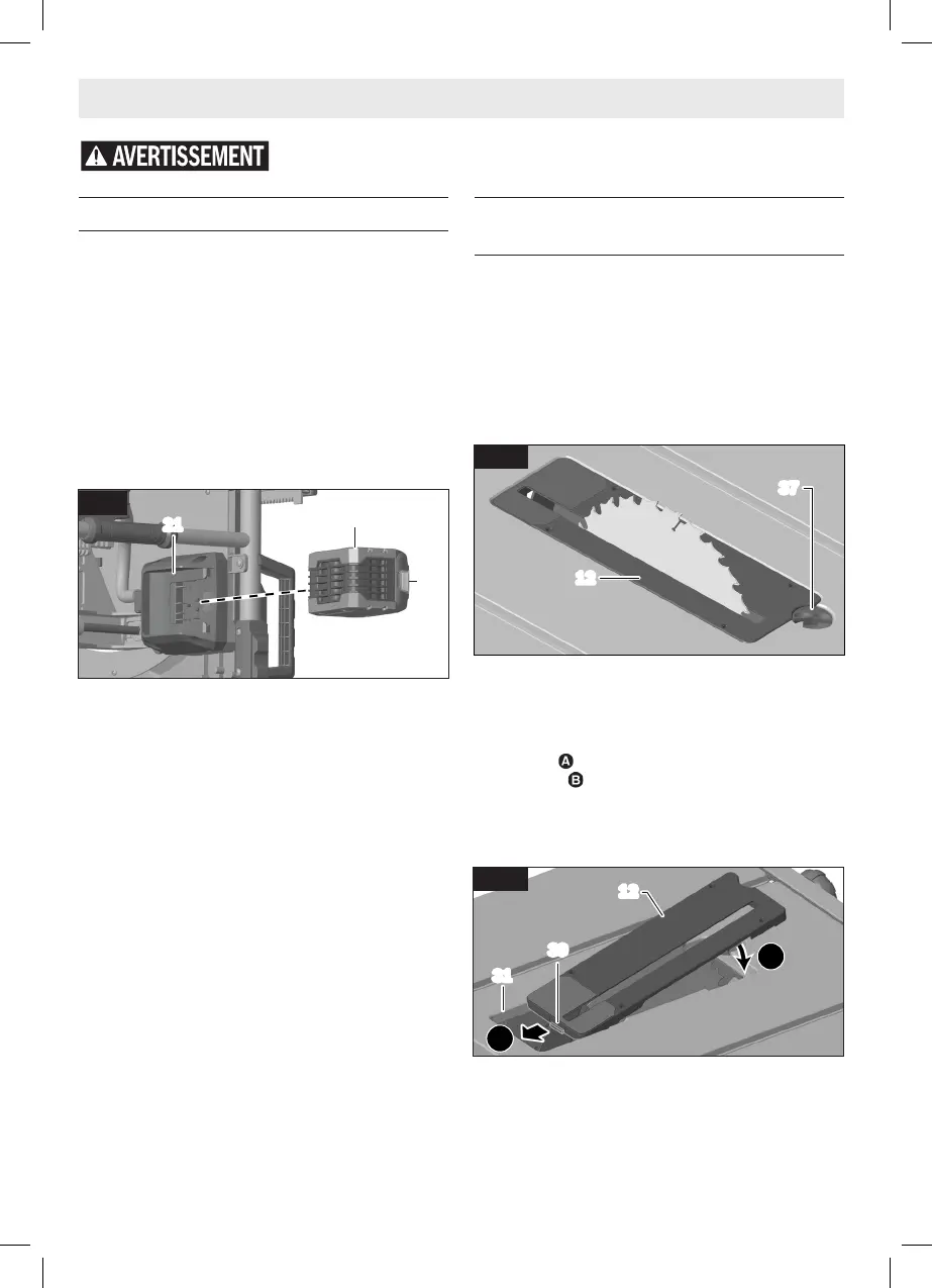 1. Placez l’onglet 39 de l’élément amovible de la table dans