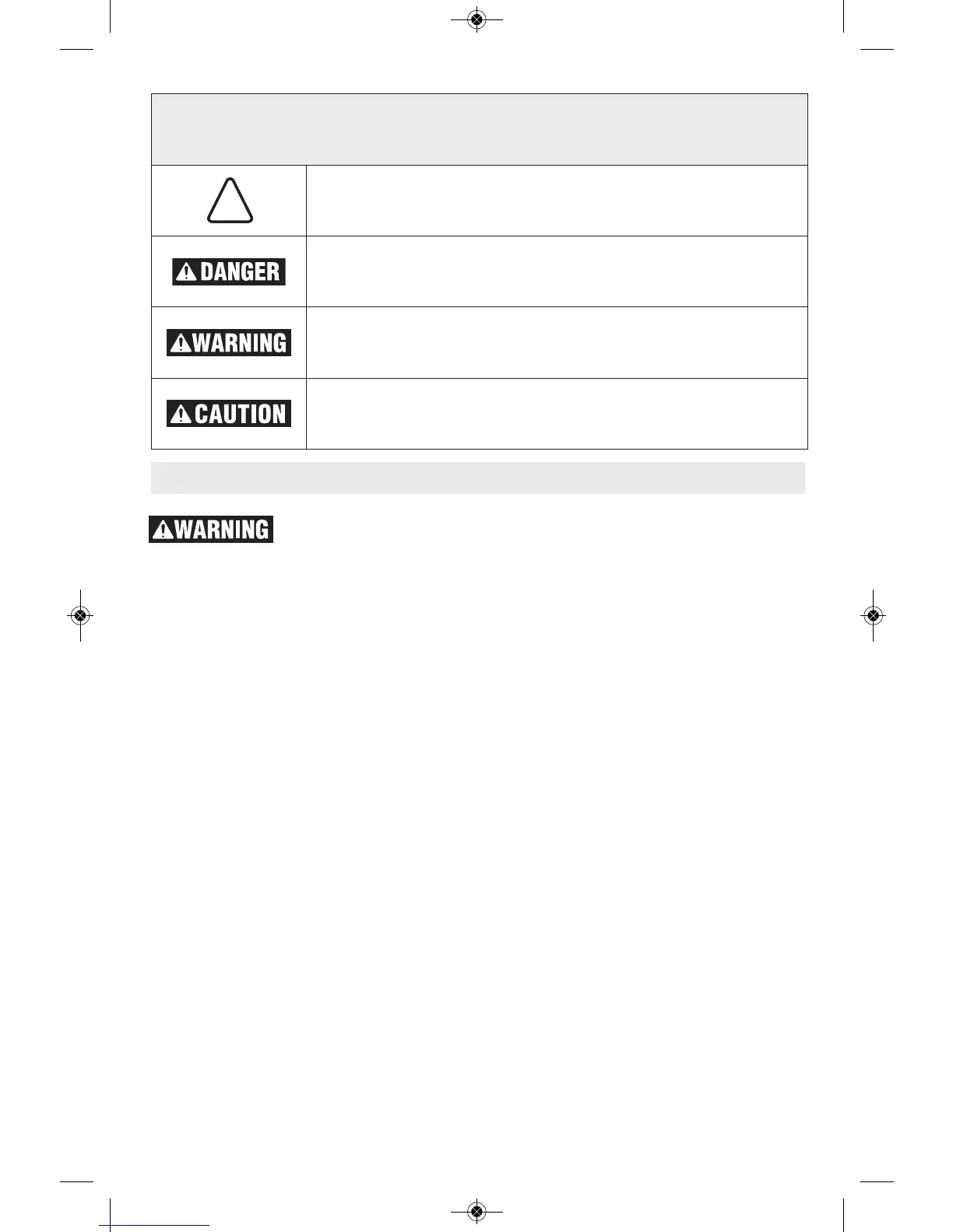 The definitions below describe the level of severity for each signal word. Please read the manual