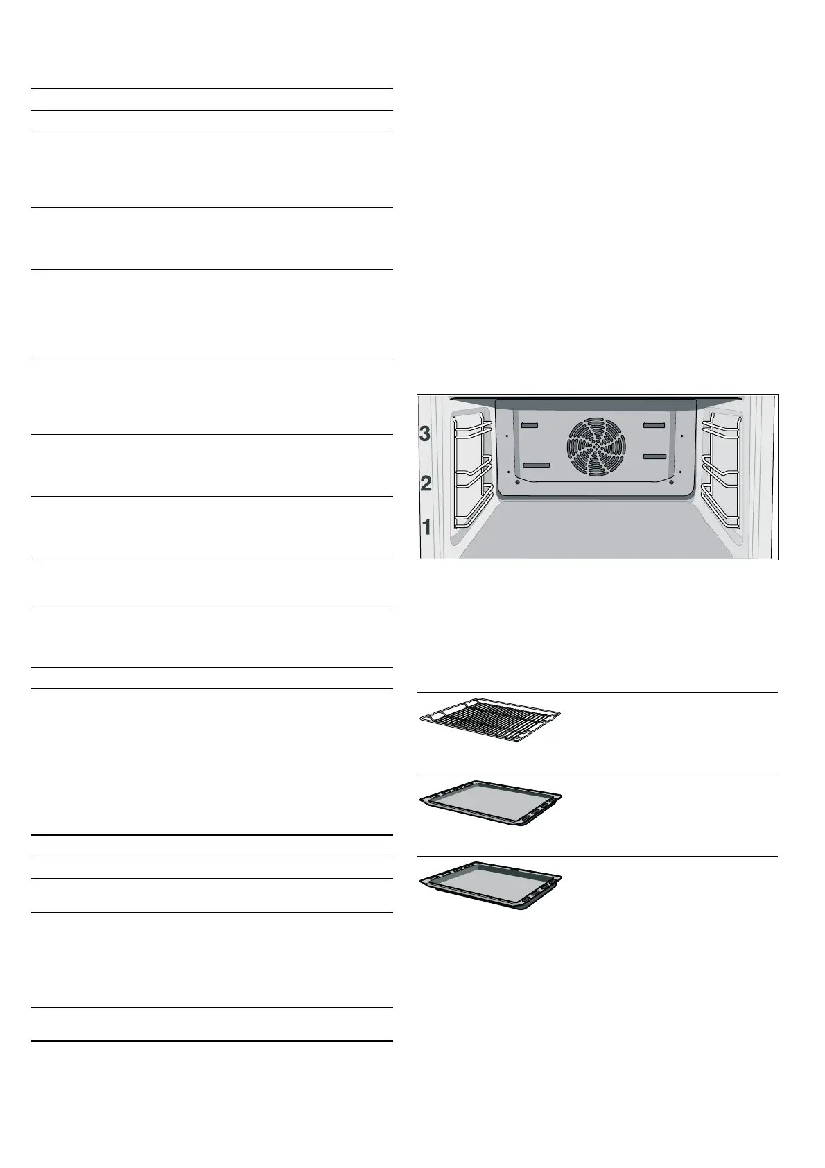 The accessories can be inserted into the oven at 3 different