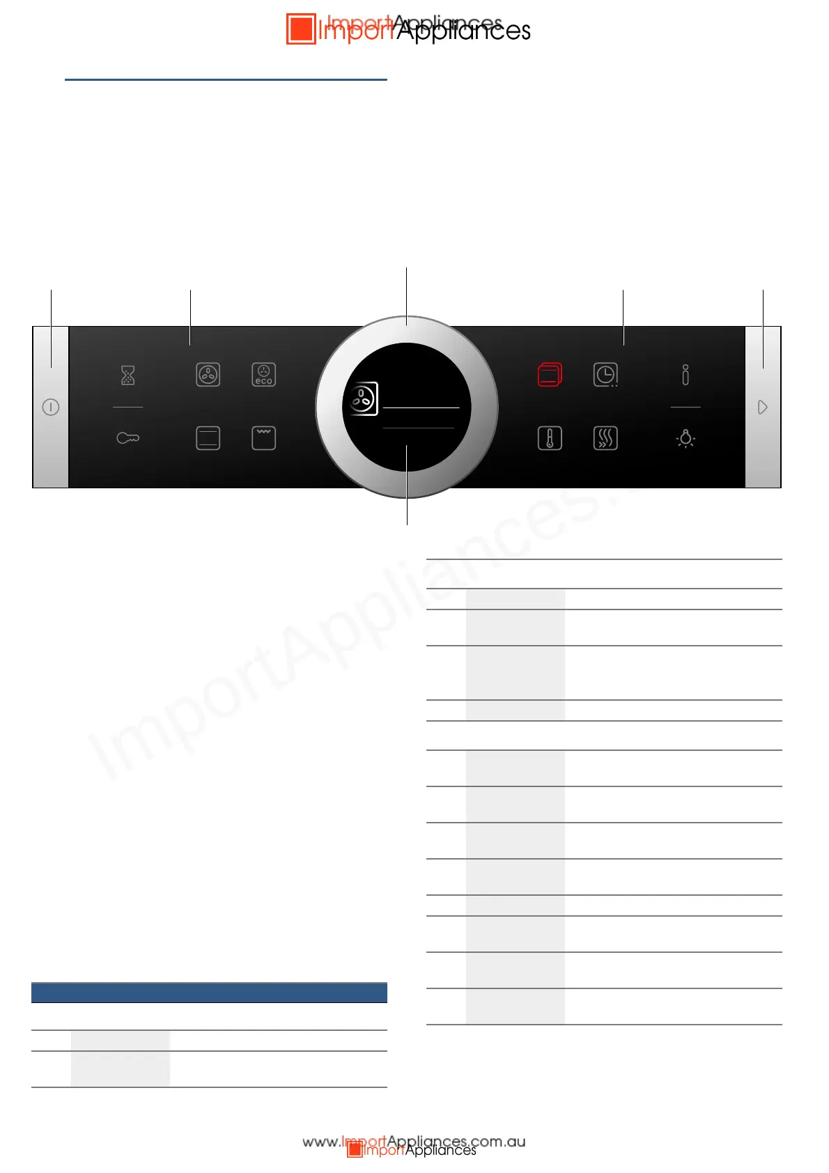 appliance functions. The current settings are shown on