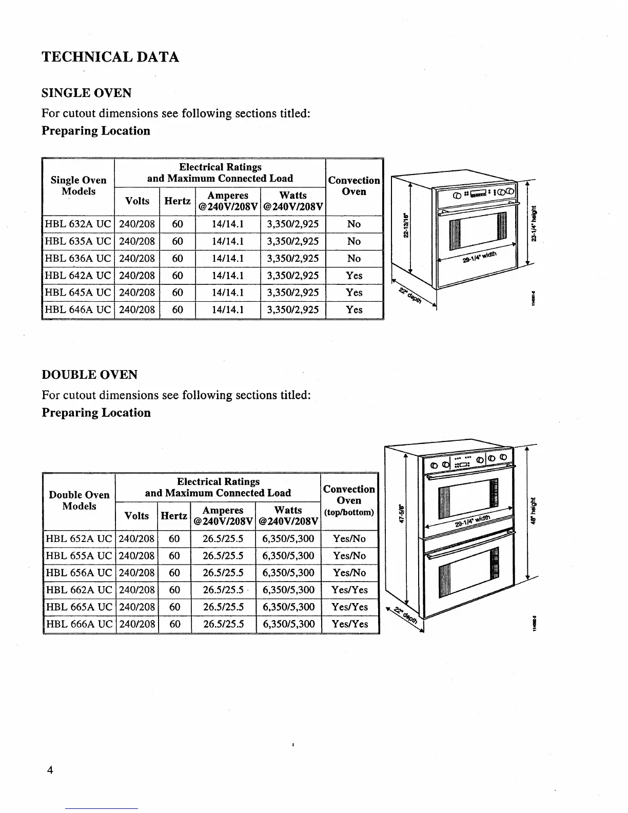 Bosch HBL 655A UC - Bosch Oven Technical Data; Single Oven Specifications; Double Oven Specifications