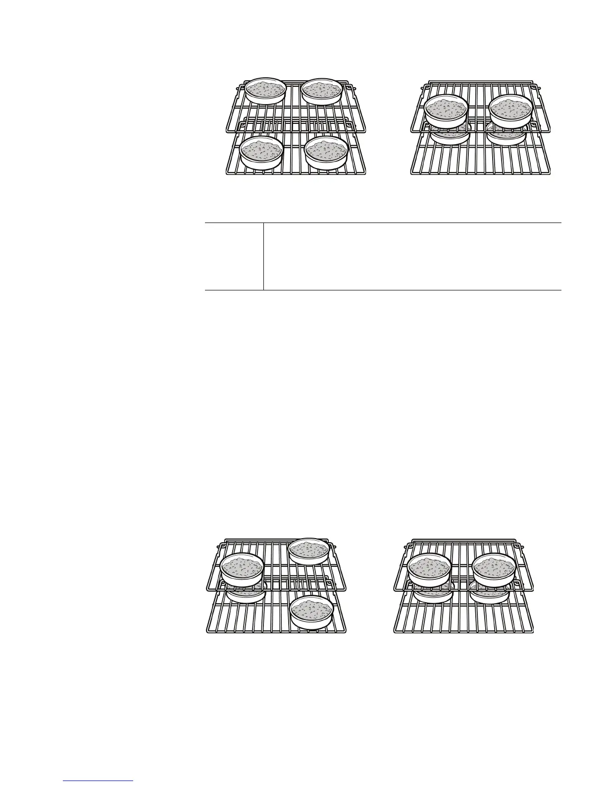 Si l'on fait cuire plusieurs plats sur une même grille, laisser au moins 1 à 1 ½ po
