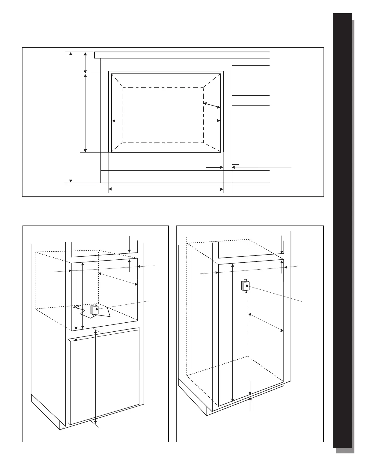Consulte las figuras abajo y la tabla en la página anterior para ver las dimensiones del recorte para el gabinete.