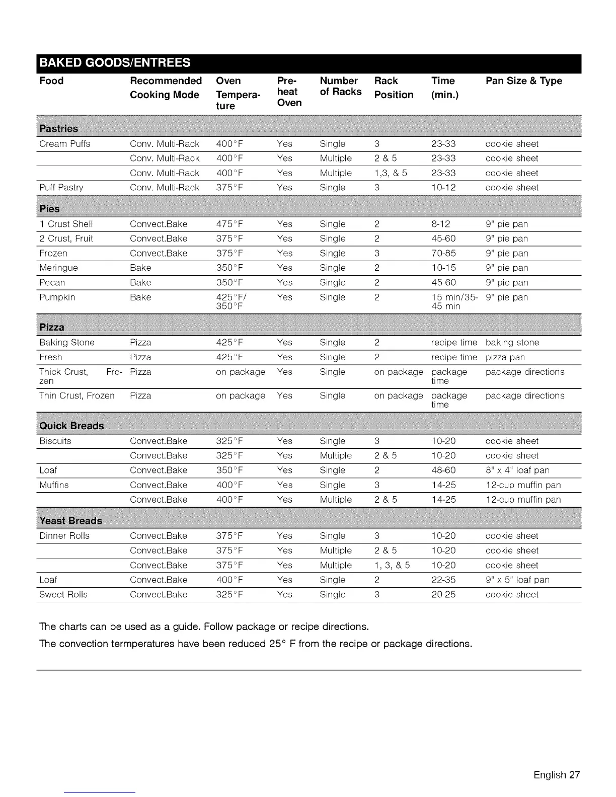 The convection termperatures have been reduced 25 ° F from the recipe or package directions.