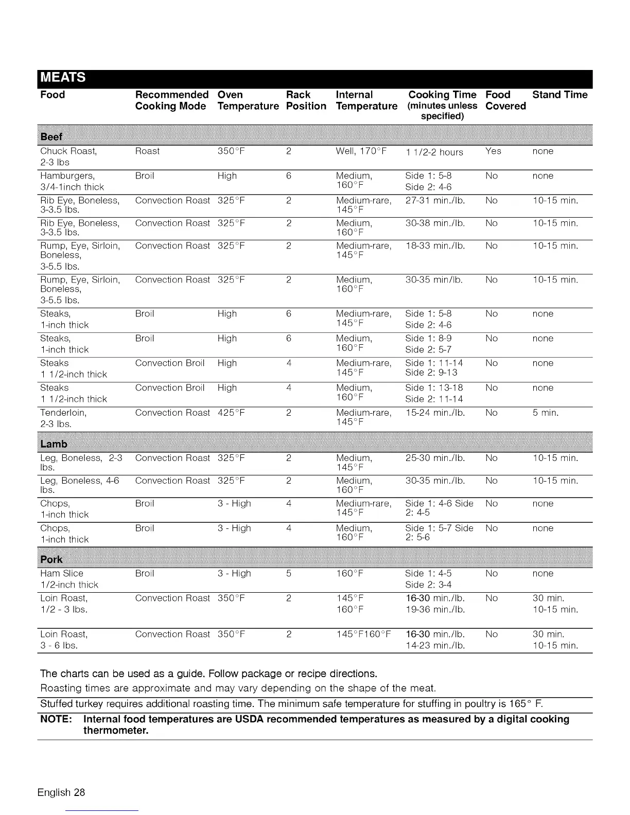 NOTE: Internal food temperatures are USDA recommended temperatures as measured by a digital cooking