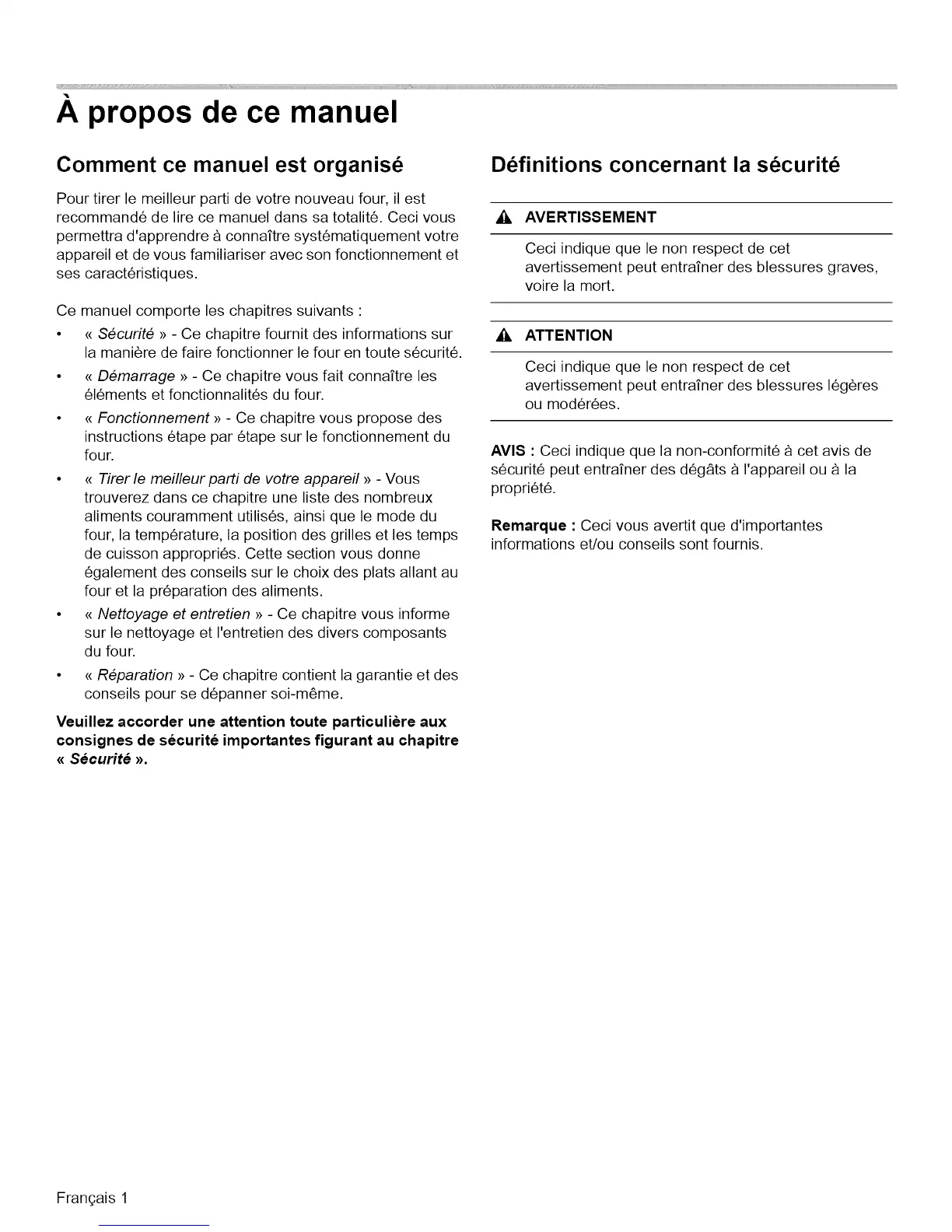 consignes de securite irnportantes figurant au chapitre