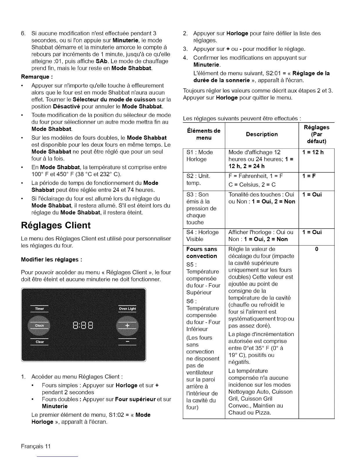Pour pouvoir acc6der au menu <<R6glages Client >>,le four