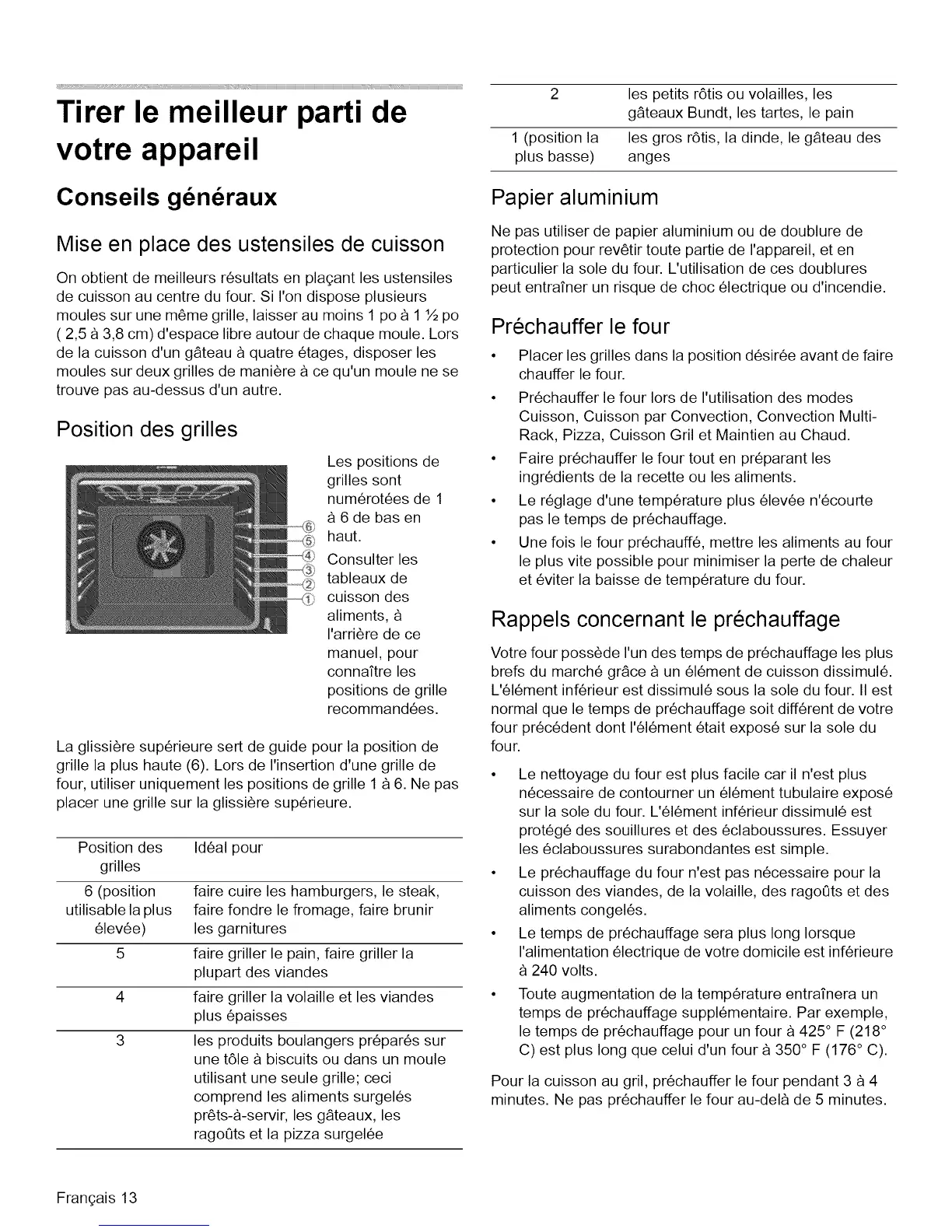 Pour la cuisson au gril, pr_chauffer le four pendant 3 _ 4