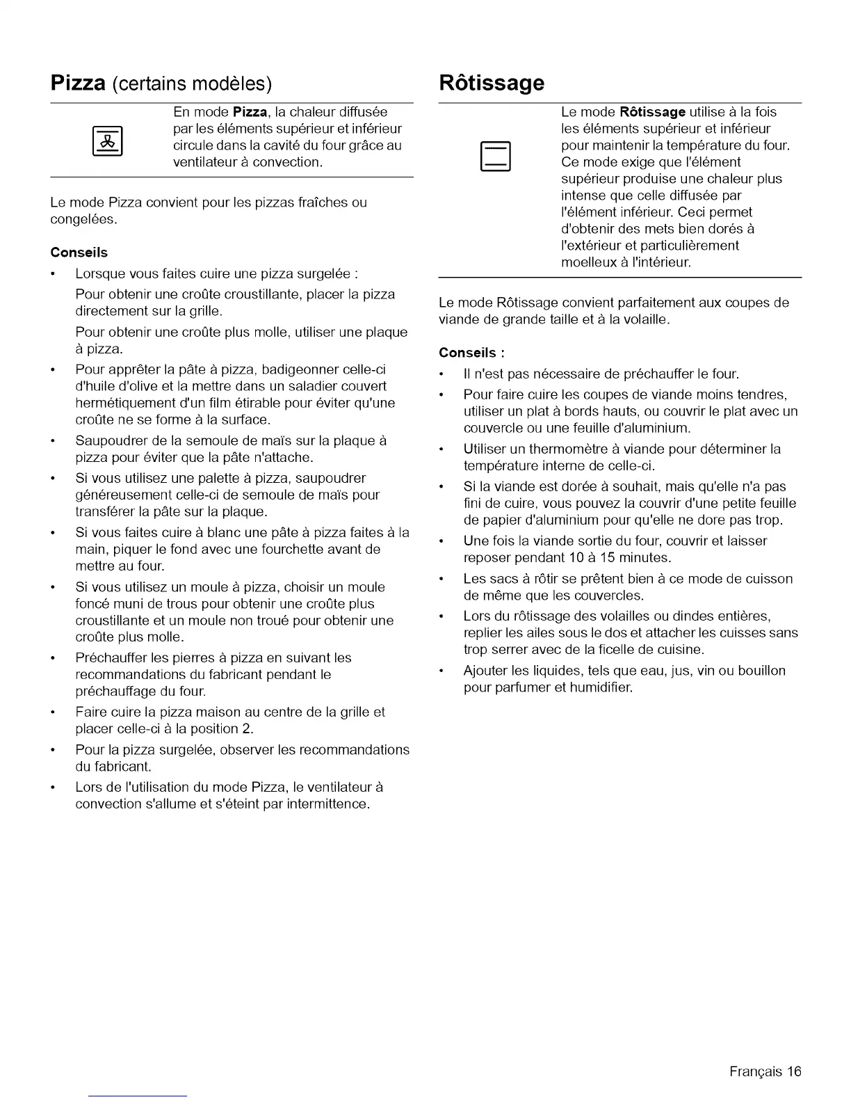 Pizza (certains modeles) R6tissage