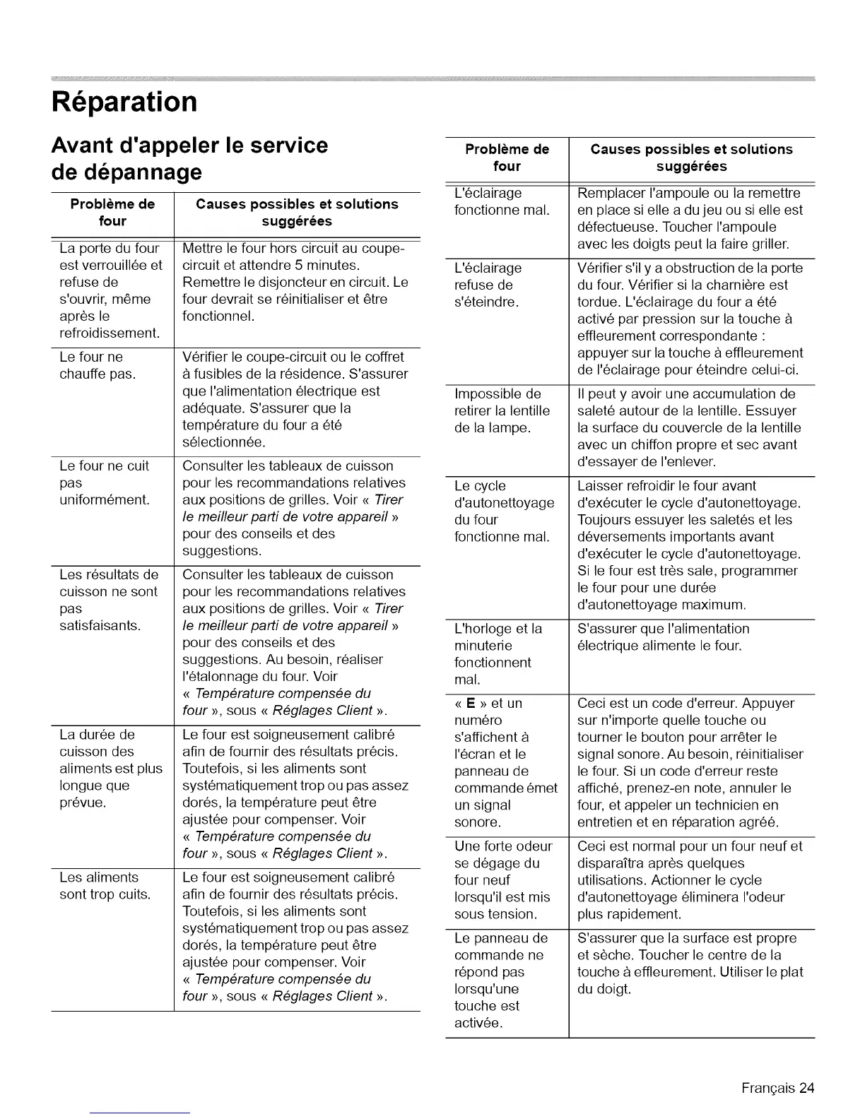 le four. Si un code d'erreur reste