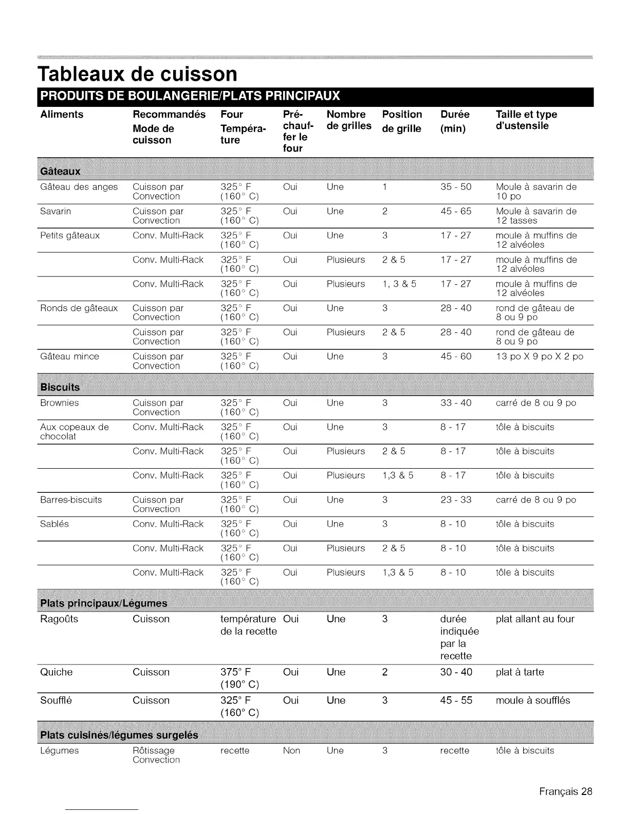 Conv. Multi-Rack 325 ° F Oui Plusieurs 1,3 & 5 8 - 17 t61e 9. biscuits