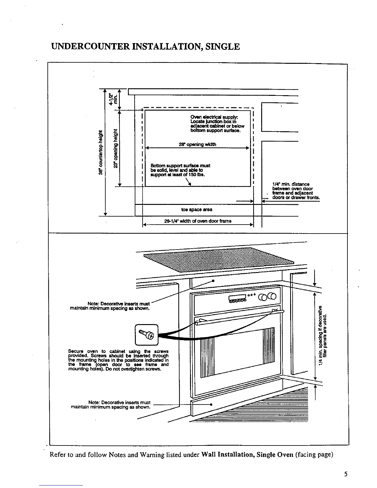 Refer to and follow Notes and Warning listed under Wall Installation, Single Oven (facing page)