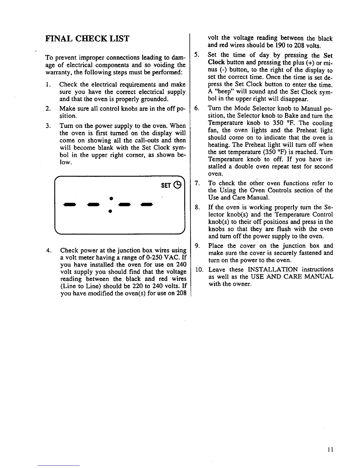 10. Leave these INSTALLATION instructions
