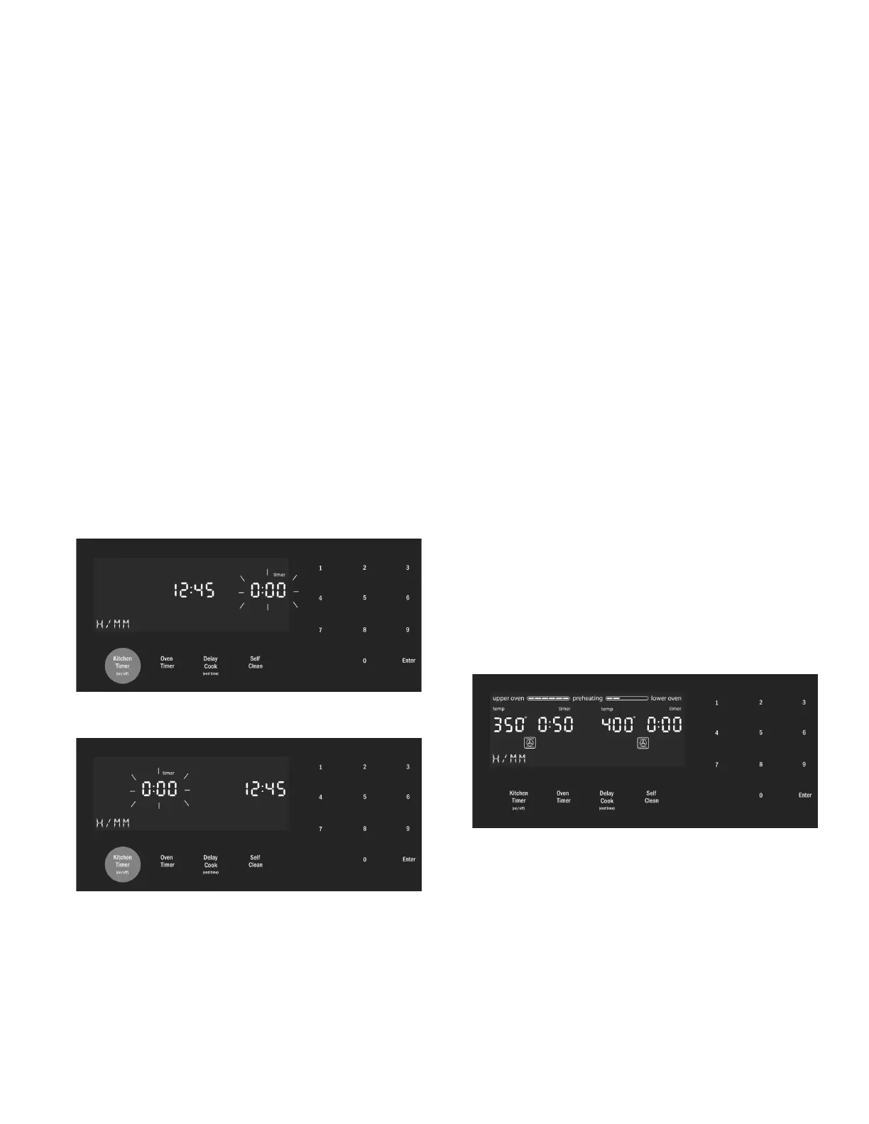 left side of the display and the lower oven kitchen timer