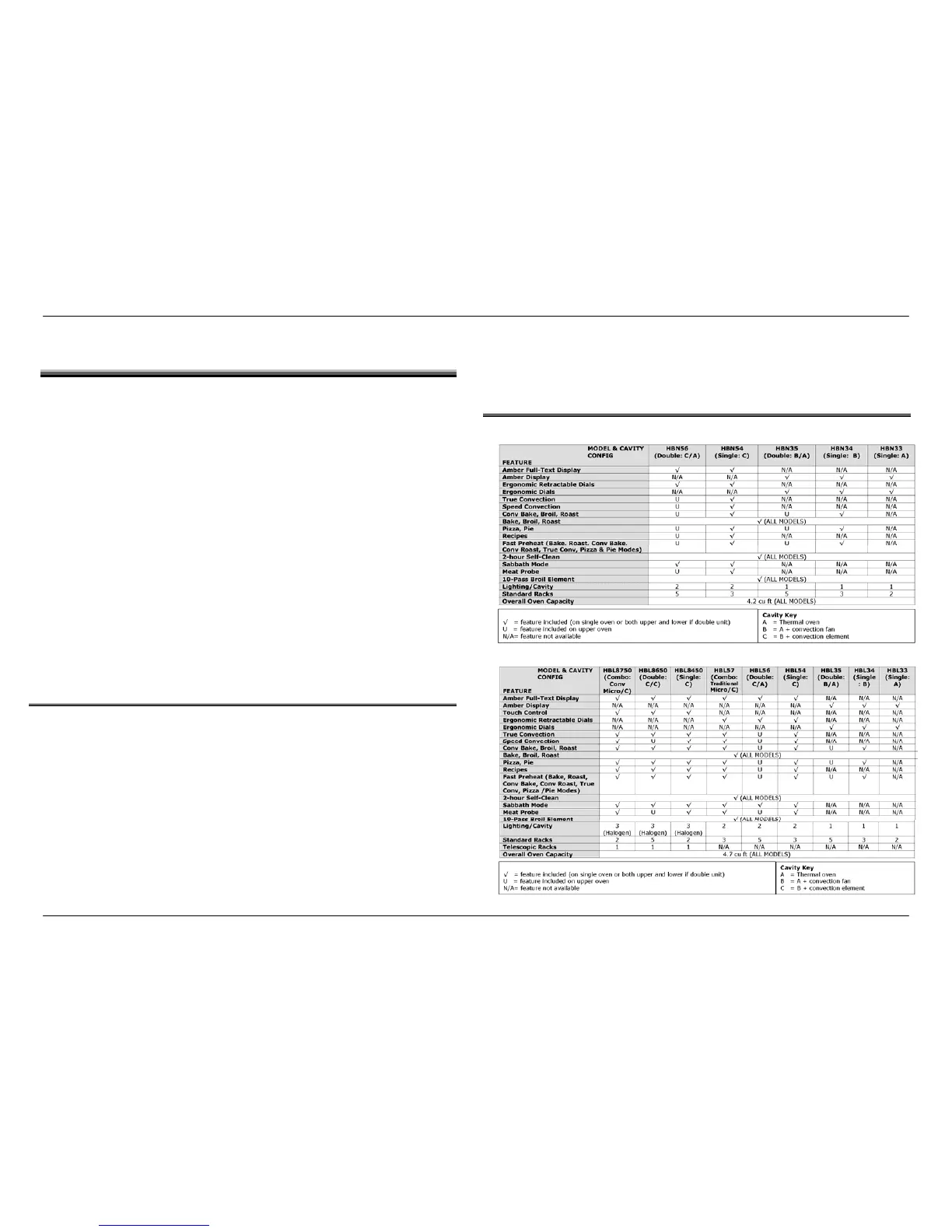 (convection), and C (convection with ring element) oven cavities. Two