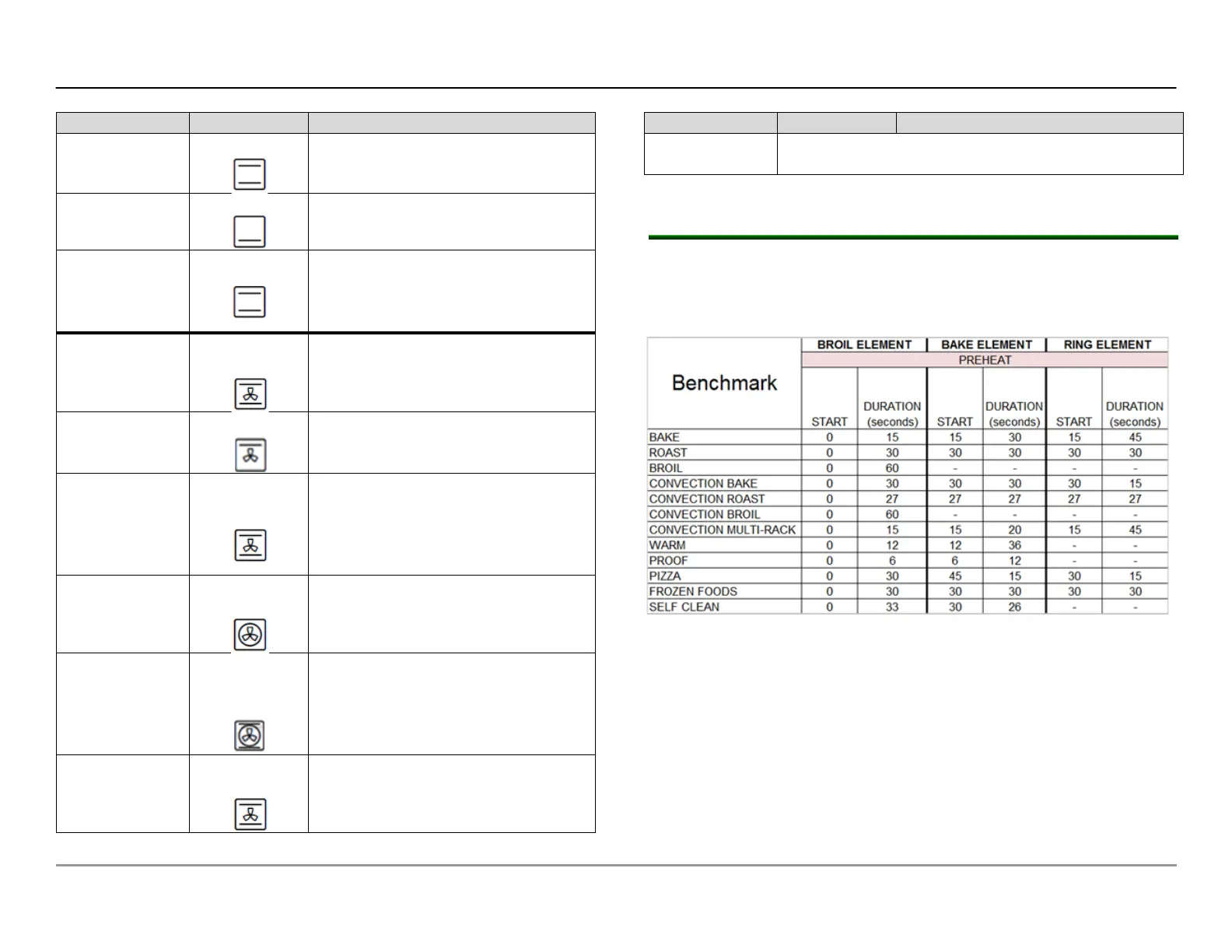 A two-point control is used for all cooking modes. Tables 3-5 reflect