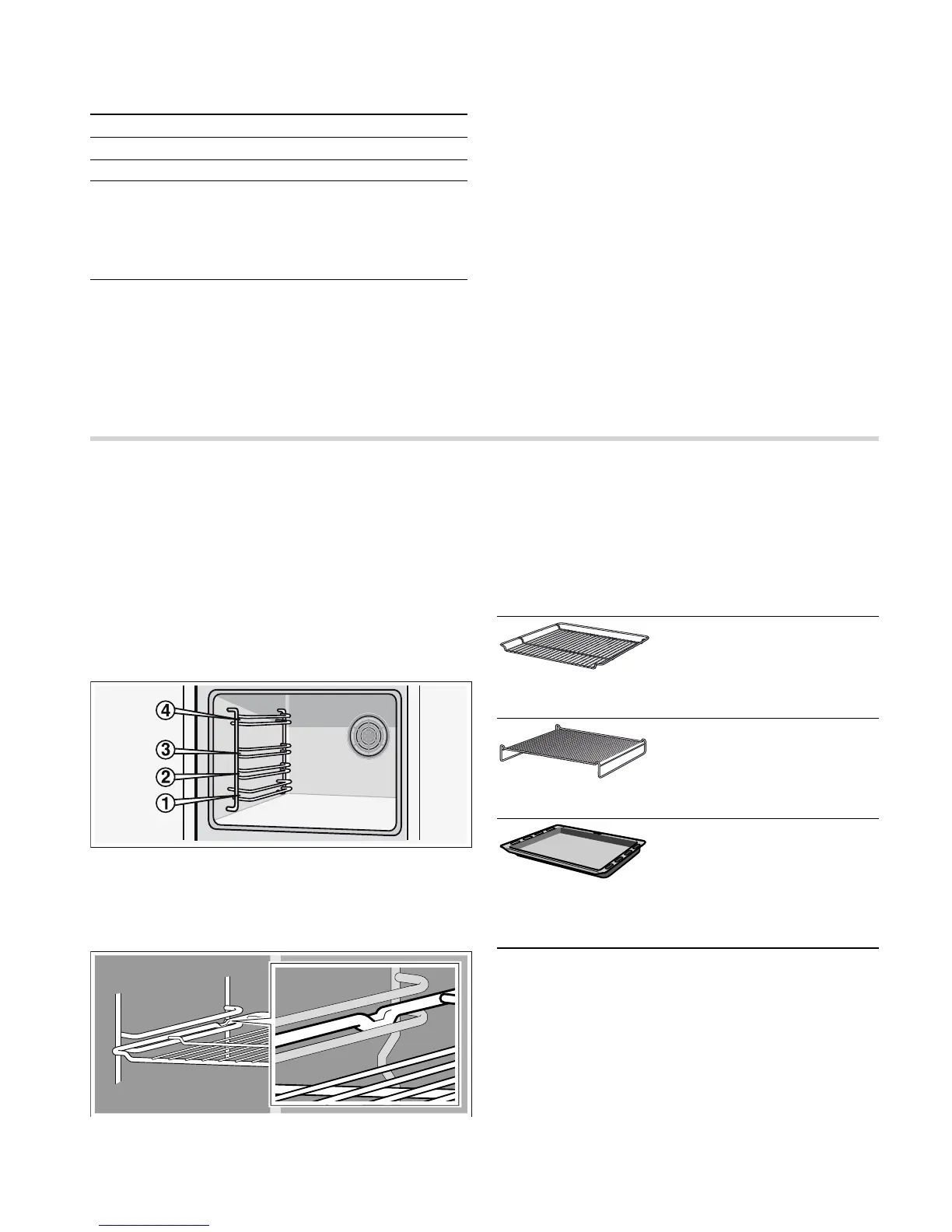 The accessories can be inserted in the oven at 4 different