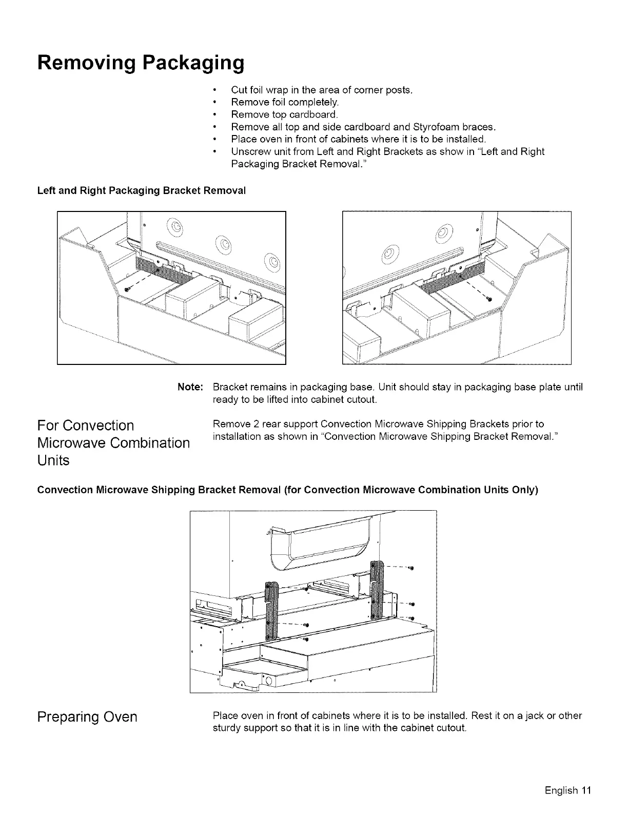Remove 2 rear support Convection Microwave Shipping Brackets prior to