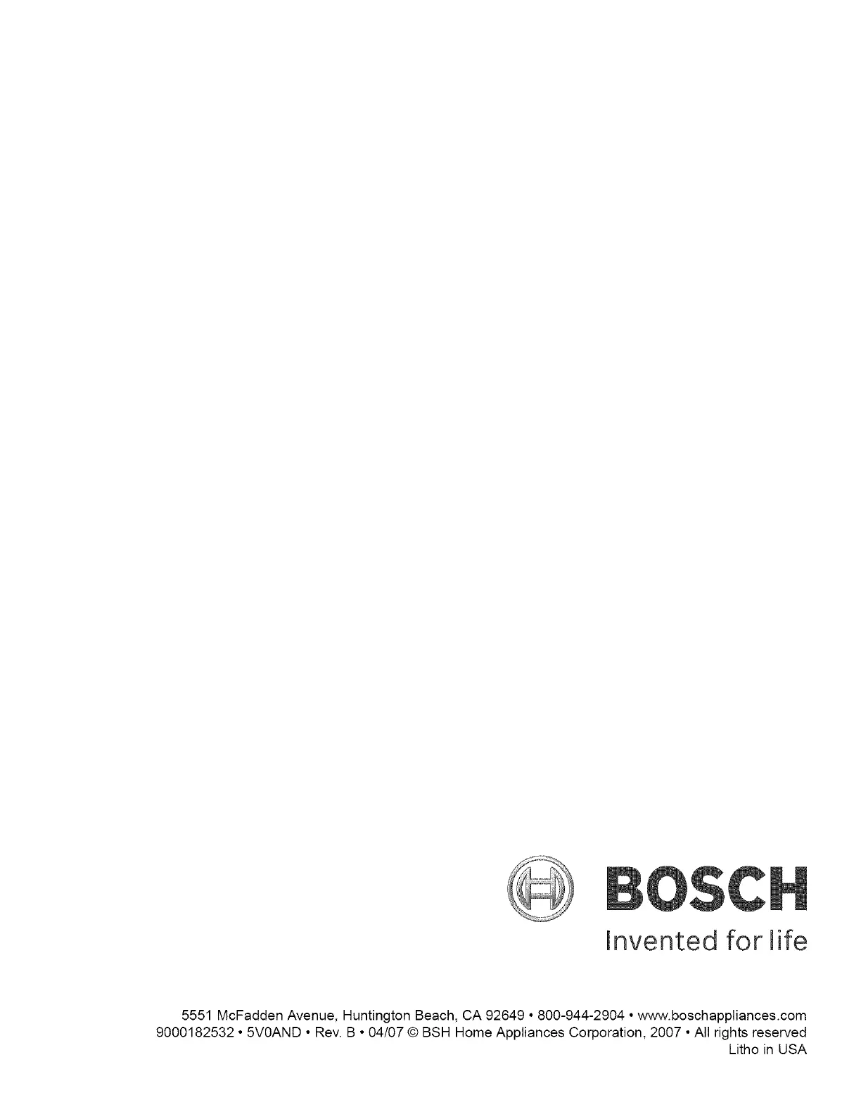 5551 McFadden Avenue, Huntington Beach, CA 92649 800-944-2904 ° www.boschappliances.com