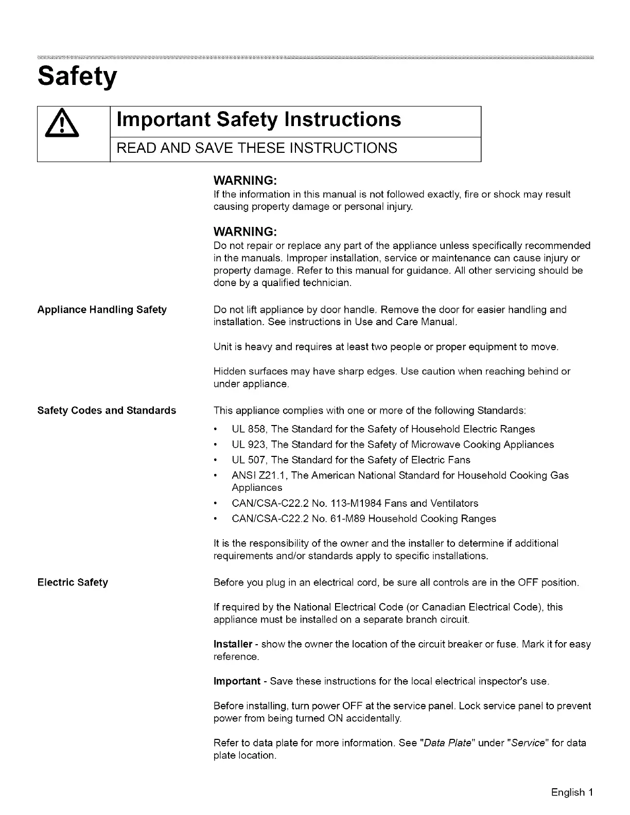 • UL 858, The Standard for the Safety of Household Electric Ranges