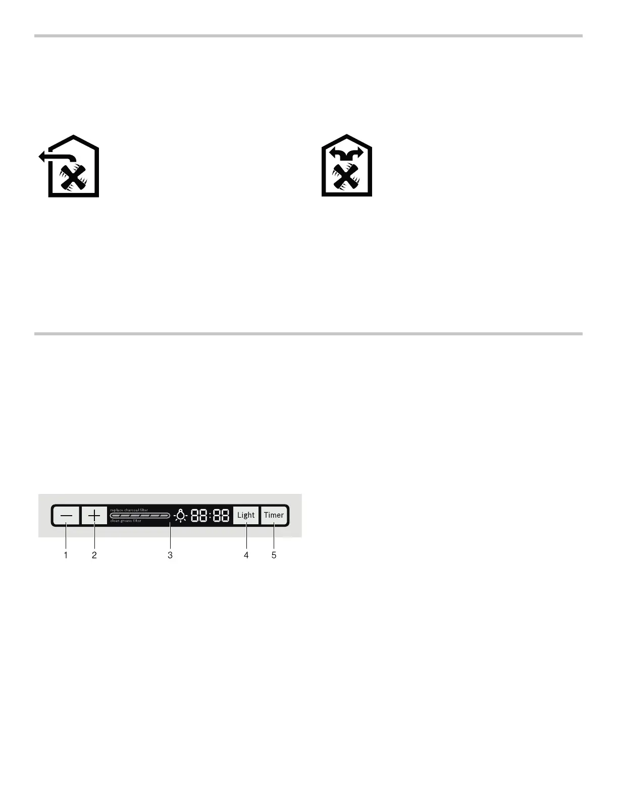 • Metal grease filter: “clean grease lter” appears on