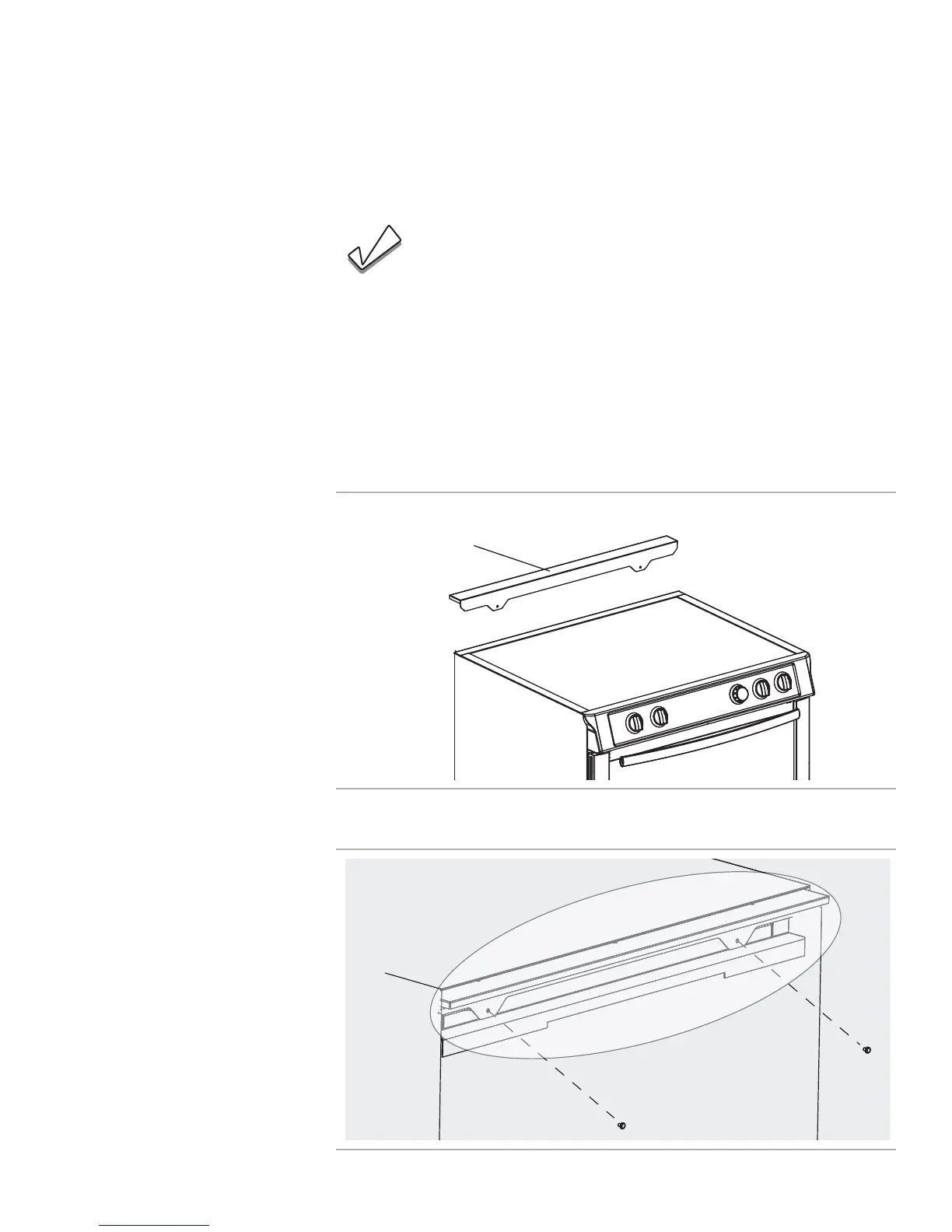 Installer deux vis par les trous de la garniture et le dosseret de la cuisinière.Voir