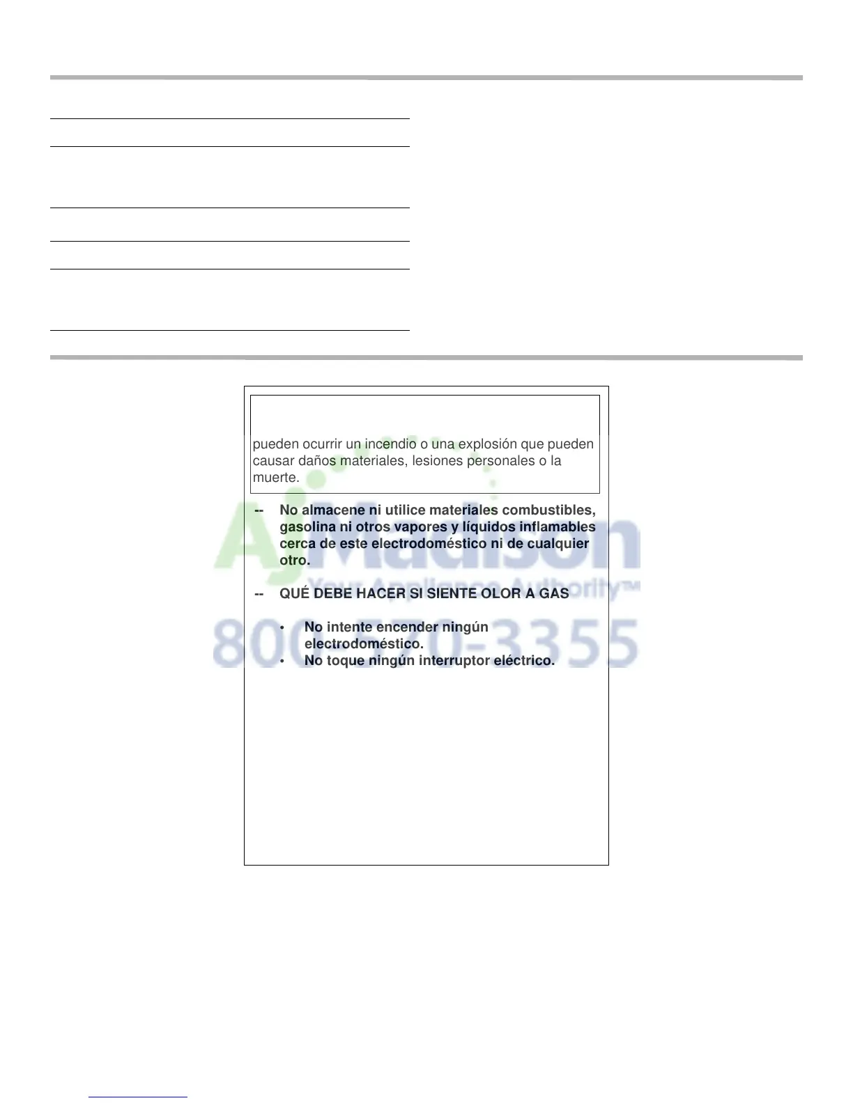 -- No almacene ni utilice materiales combustibles,