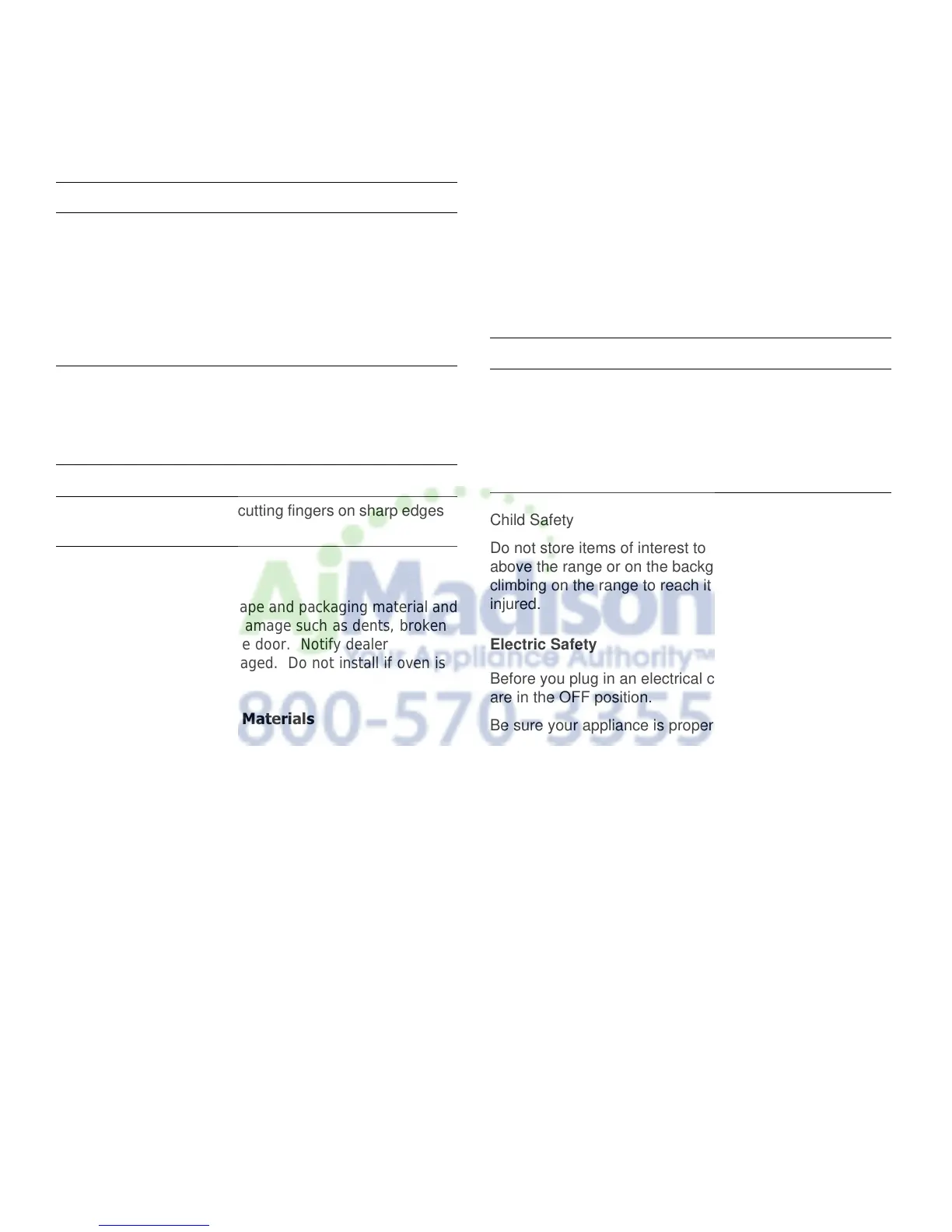 immediately if oven is damaged. Do not install if oven is