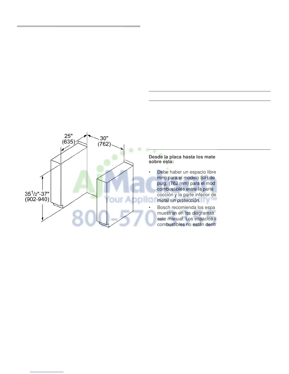 • Bosch recomienda los espacios libres mínimos que se