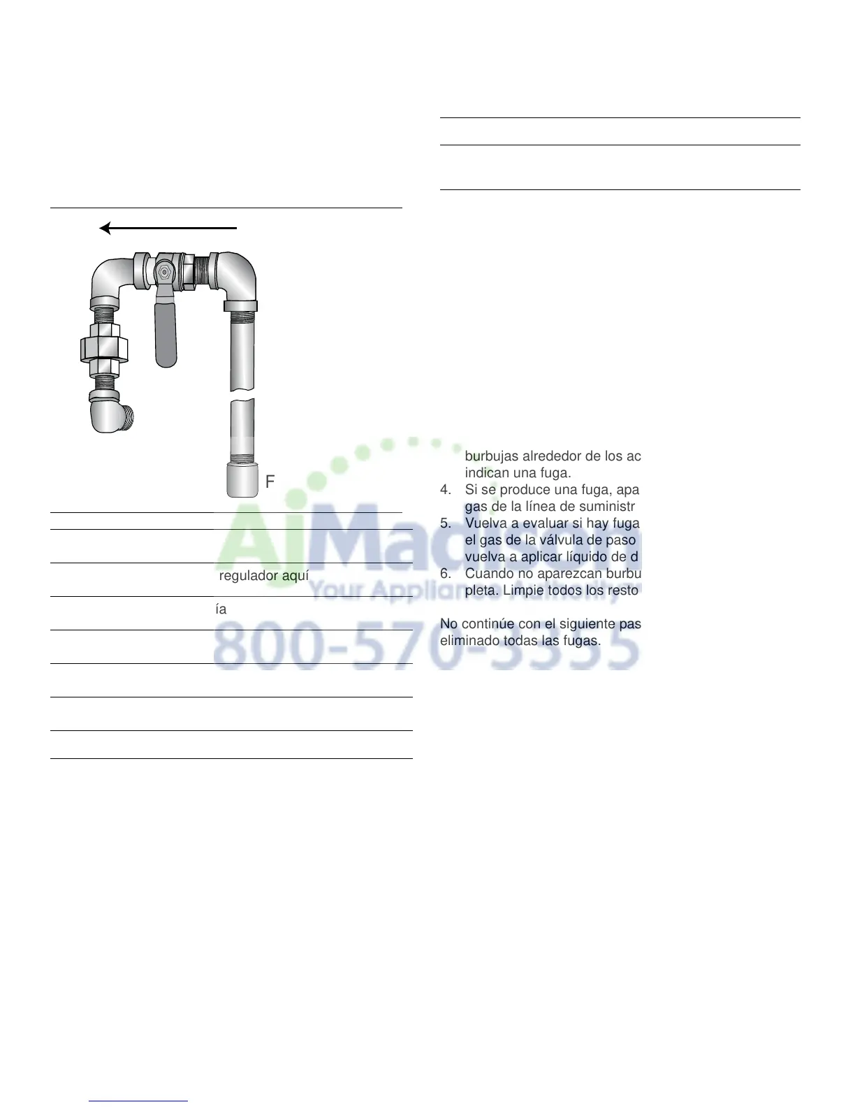 gas de la línea de suministro y apriete las conexiones.