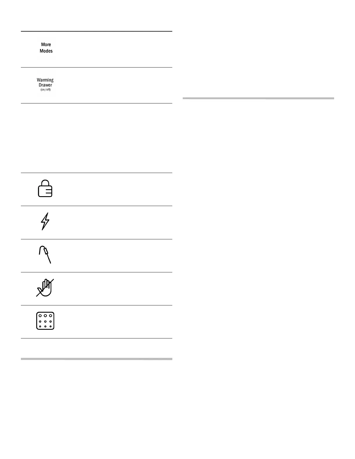 Modes touchpad. These modes include Convection Broil,