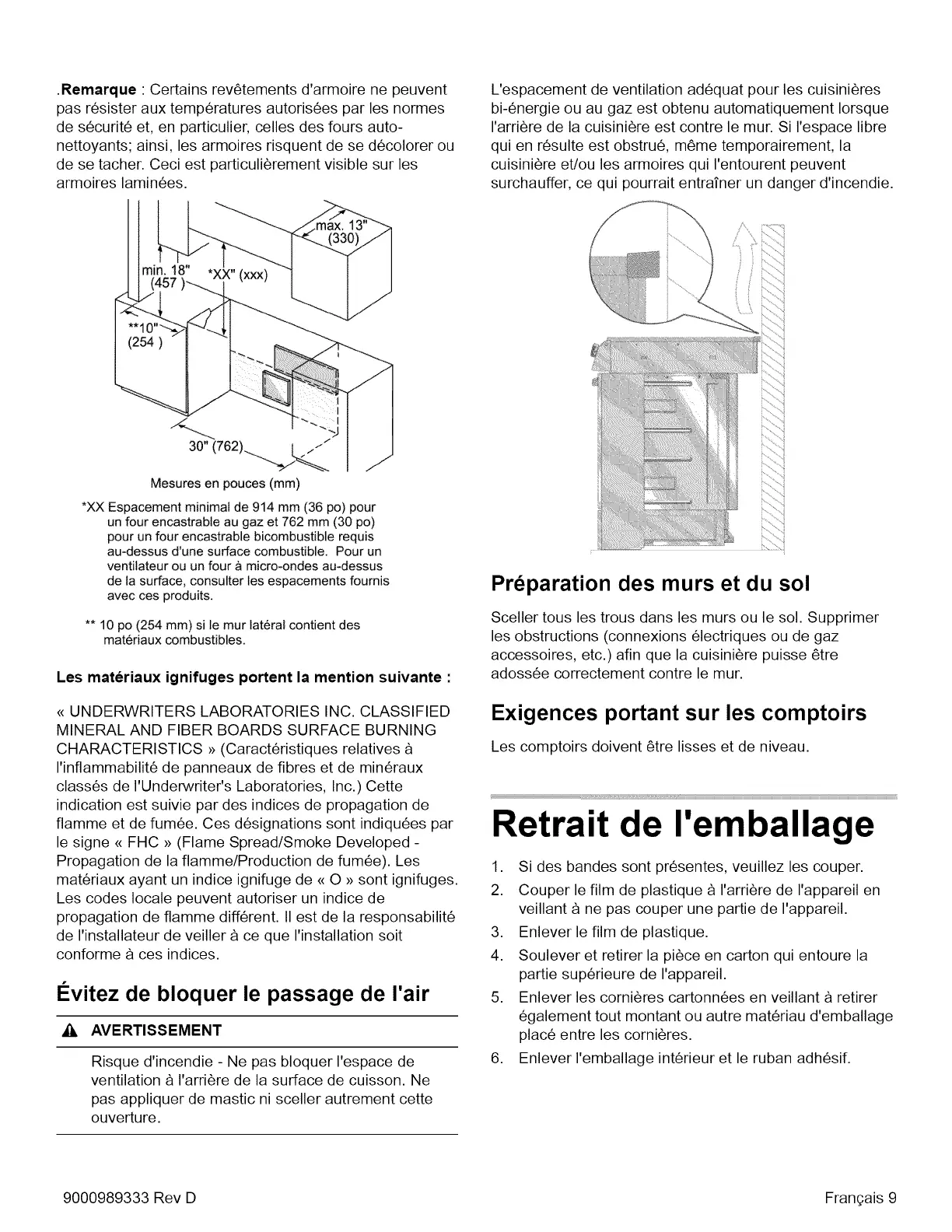 Bosch HDIPO54UC - Evitez de Bloquer le Passage de Lair; Exigences Portant Sur les Comptoirs; Préparation des Murs et Dusol; Retrait de Lemballage