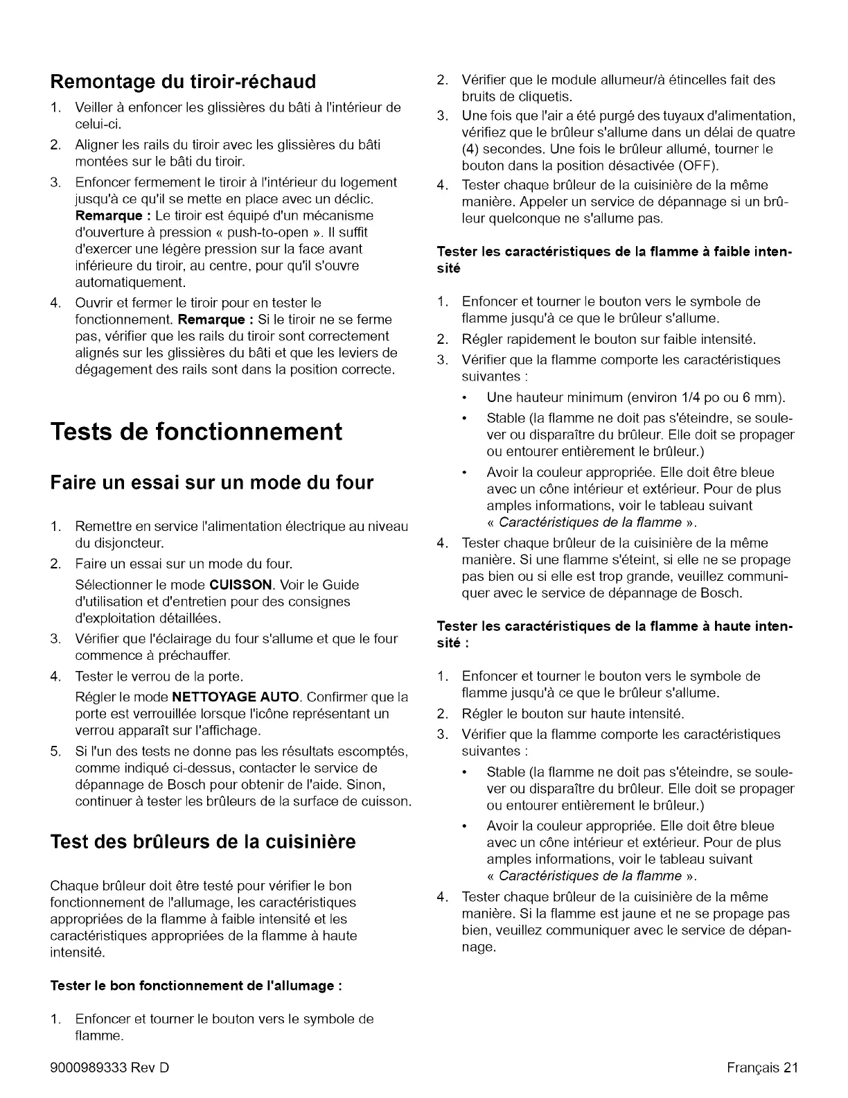 Bosch HDIPO54UC - Remontage du Tiroir-Rechaud; Tests de Fonctionnement