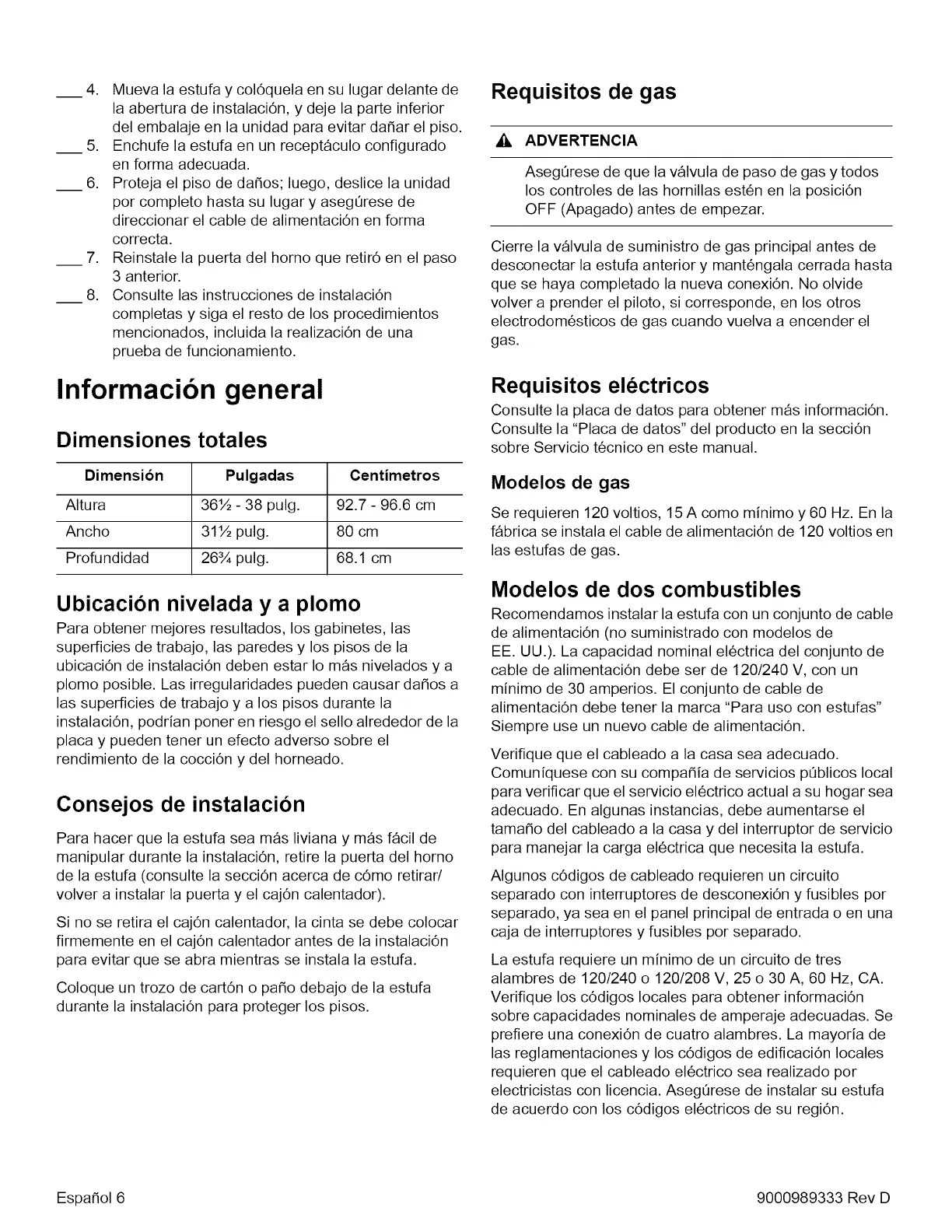 Bosch HDIPO54UC - Consejos de Instalacion; Dimensiones Totales; Informacion General; Modelos de Dos Combustibles