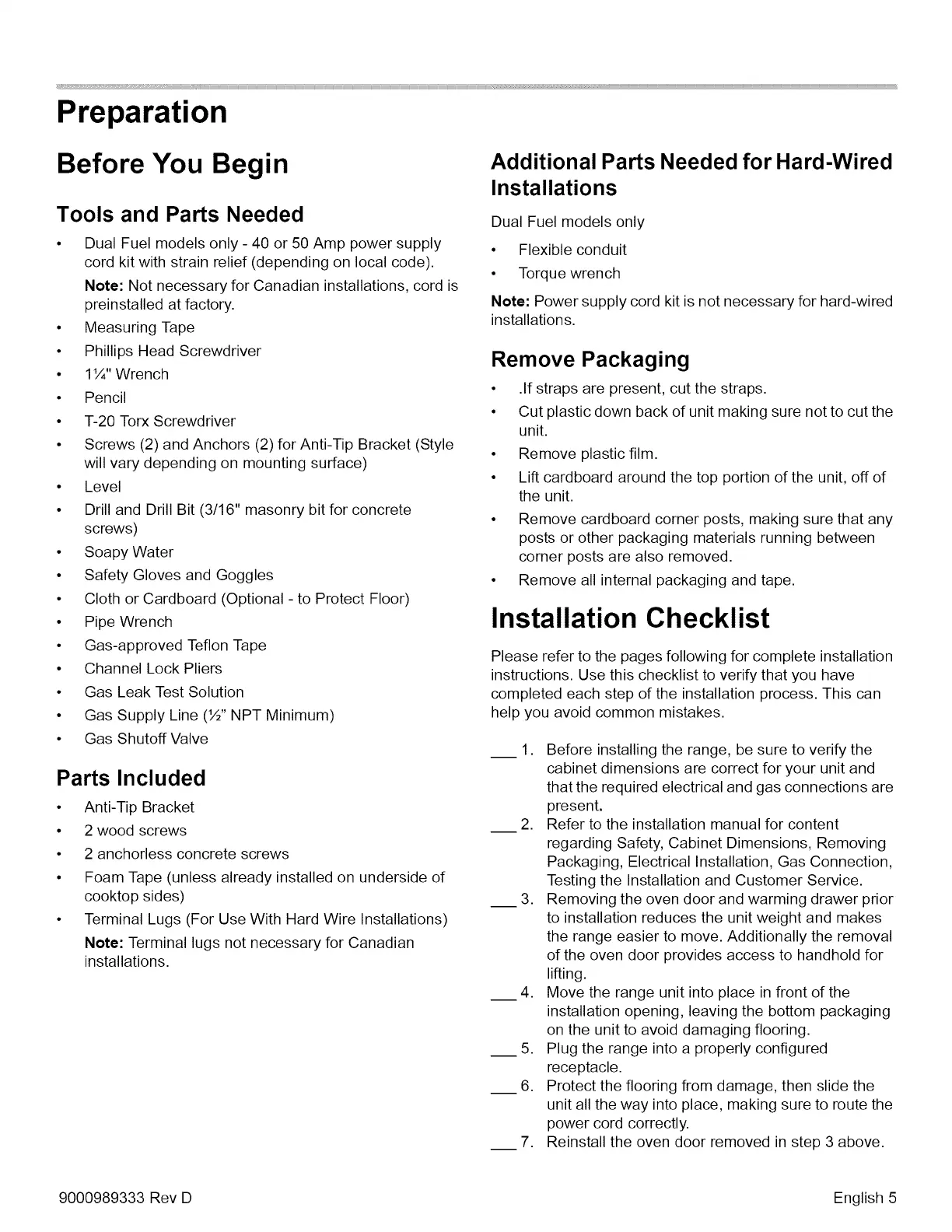 Bosch HDIPO54UC - Preparation; Before You Begin; Tools and Parts Needed; Parts Included