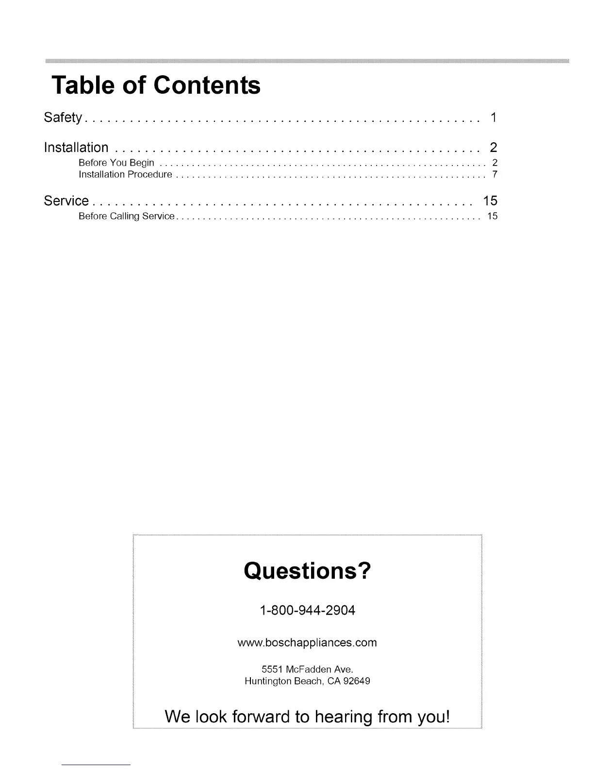 Service ................................................... 15