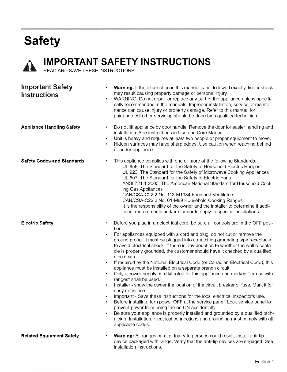 UL 858, The Standard for the Safety of Household Electric Ranges