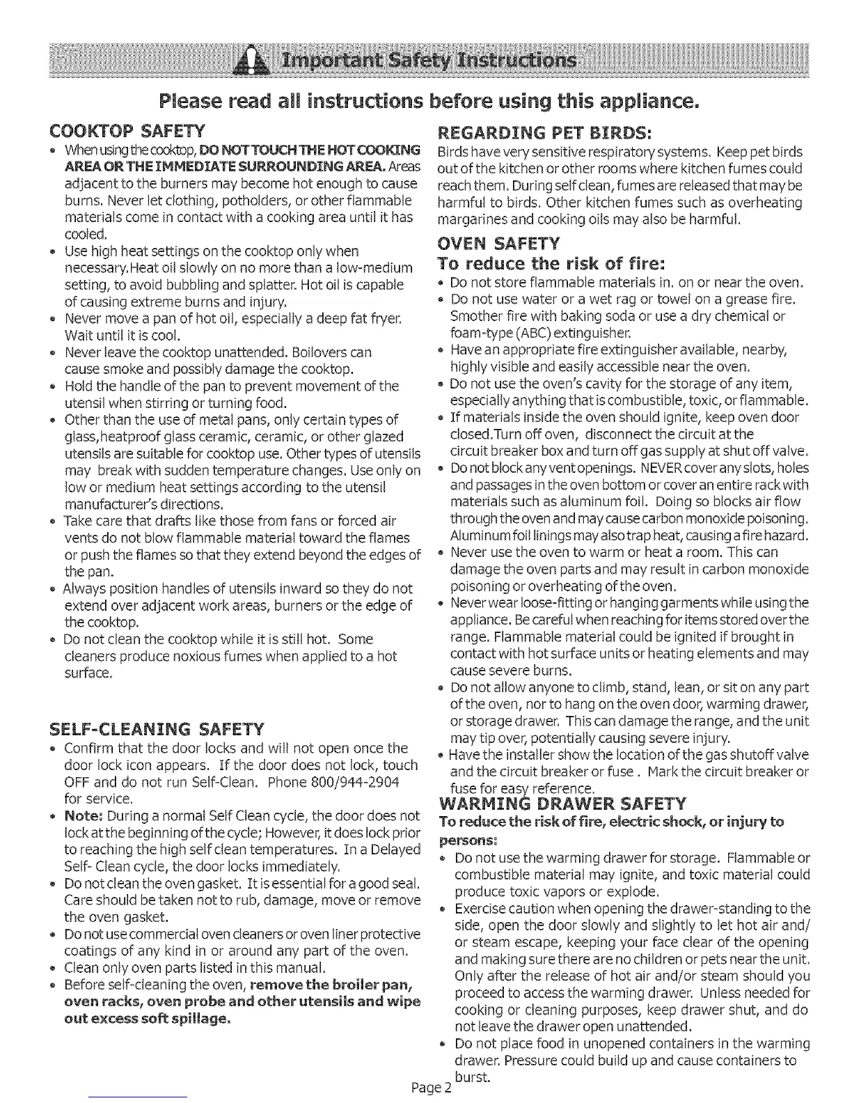 WARMING DRAWER SAFETY