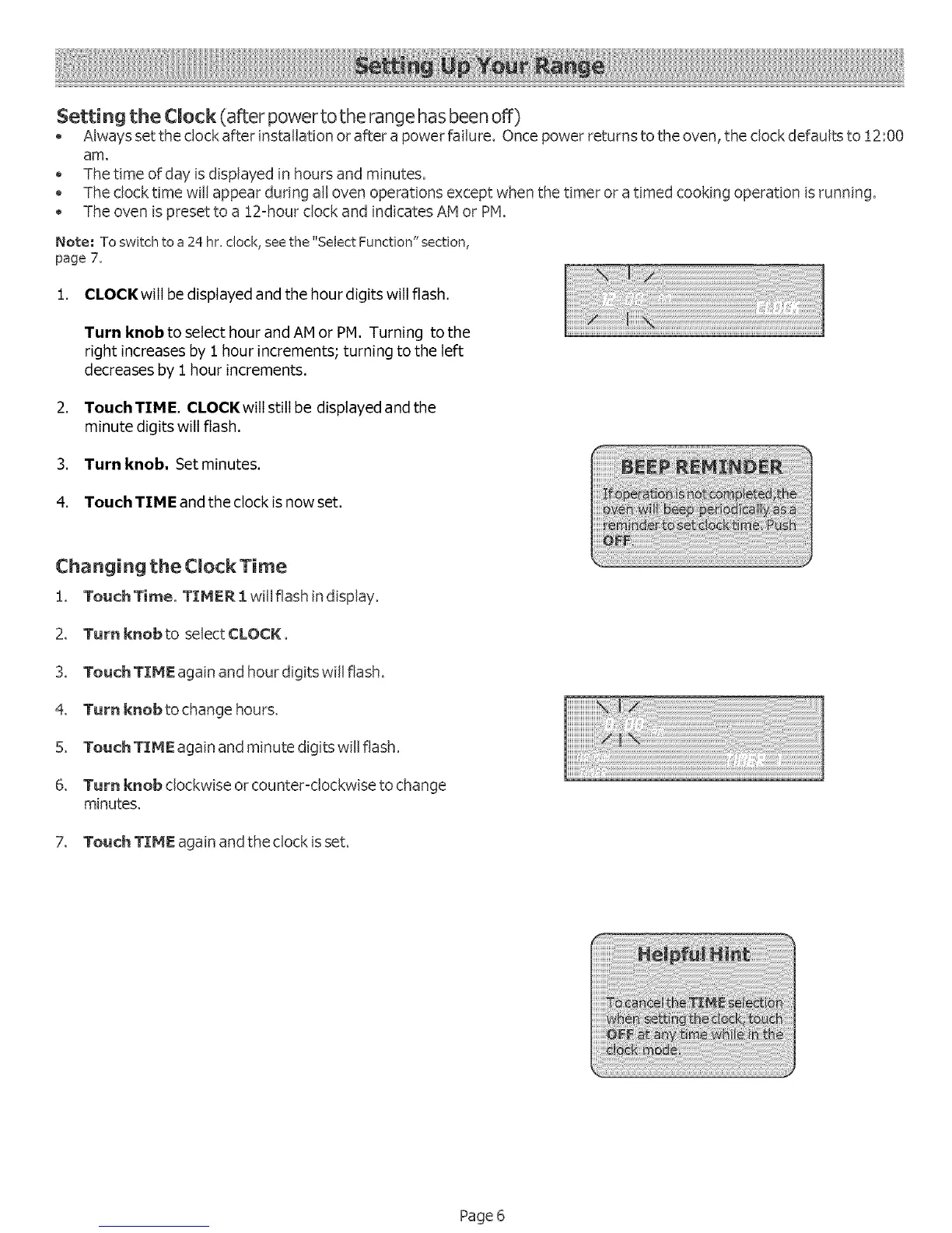Note: To switchto a24 hr. clock,seethe "SelectFunction" section,