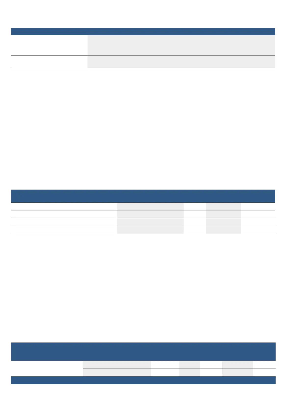 settings indicated in the settings tables for the first and