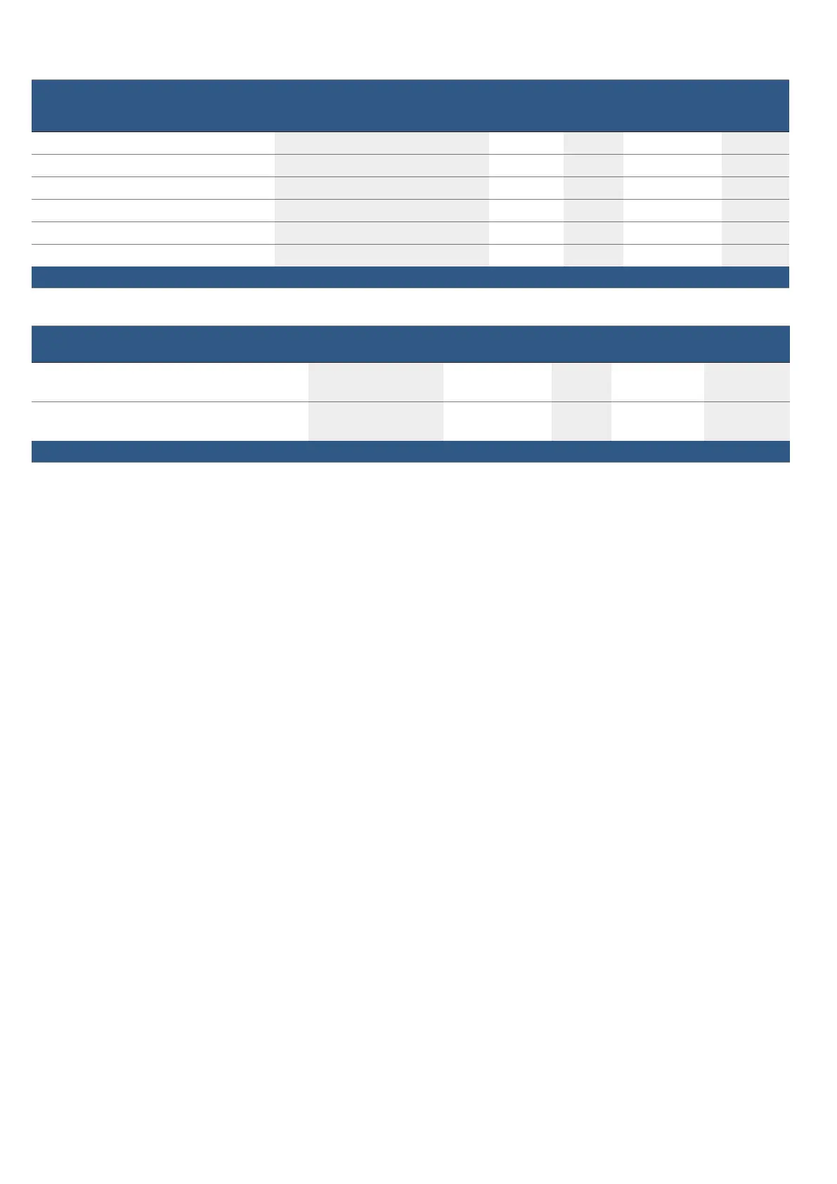 ■ Please note the information in the tables about