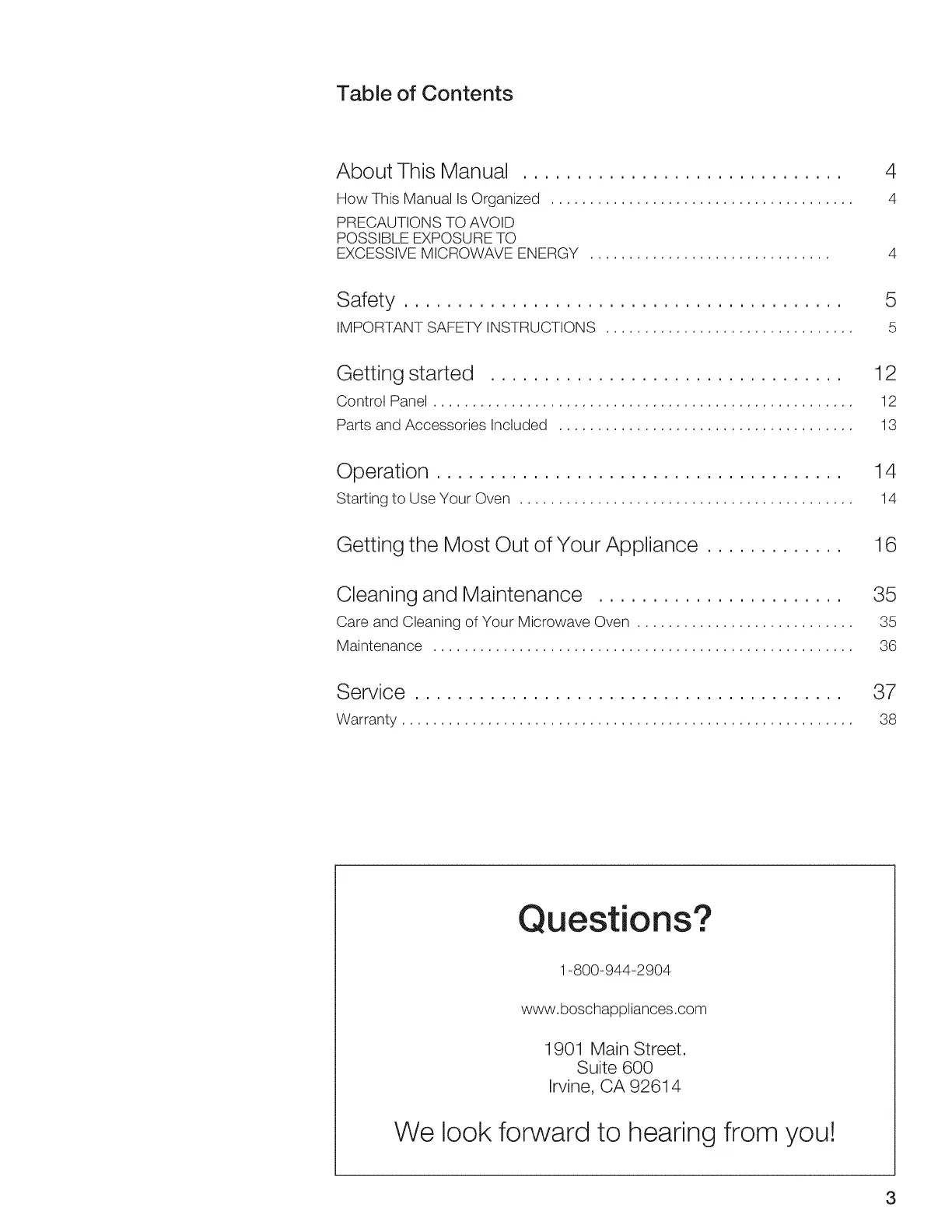 Care and Cleaning of Your Microwave Oven ............................ 35