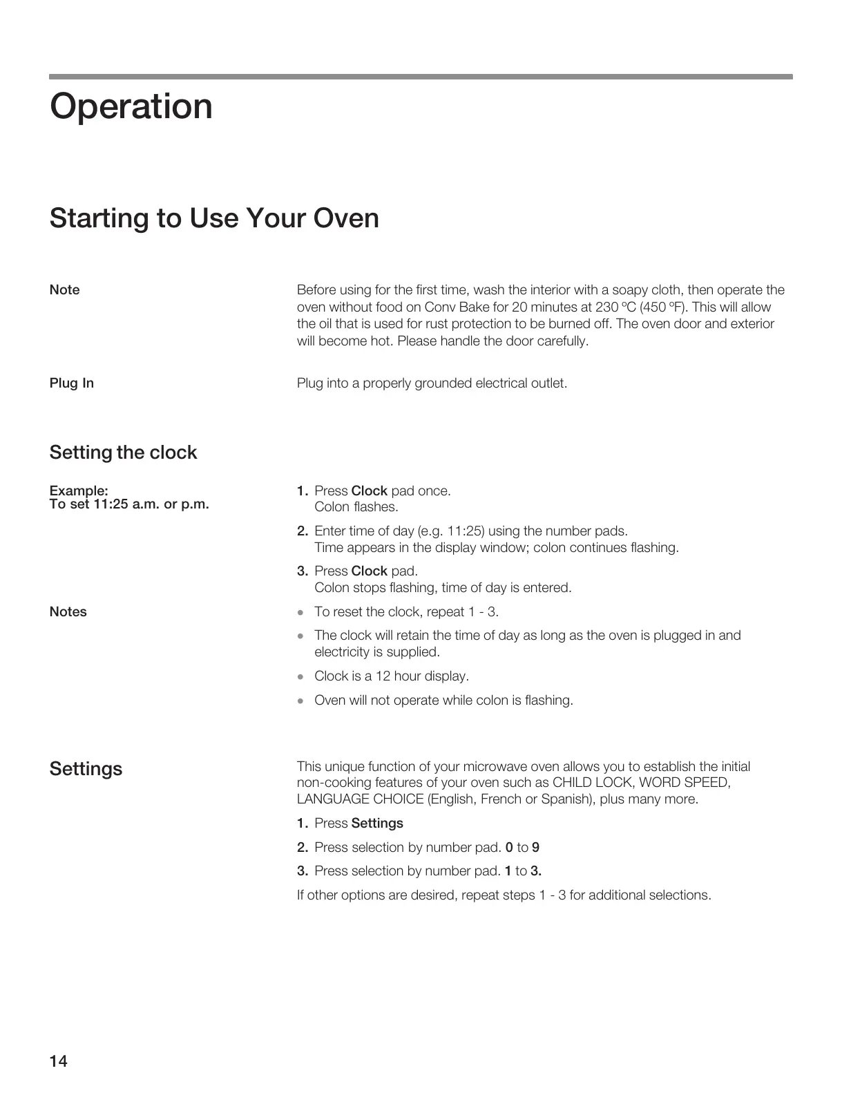 Bosch HMB8050 - Operation; Initial Oven Setup