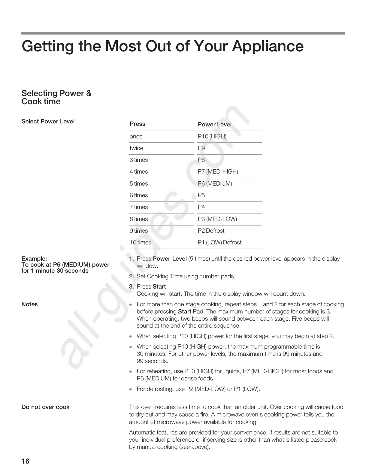 Bosch HMB8050 - Optimizing Appliance Use; Selecting Power and Cook Time