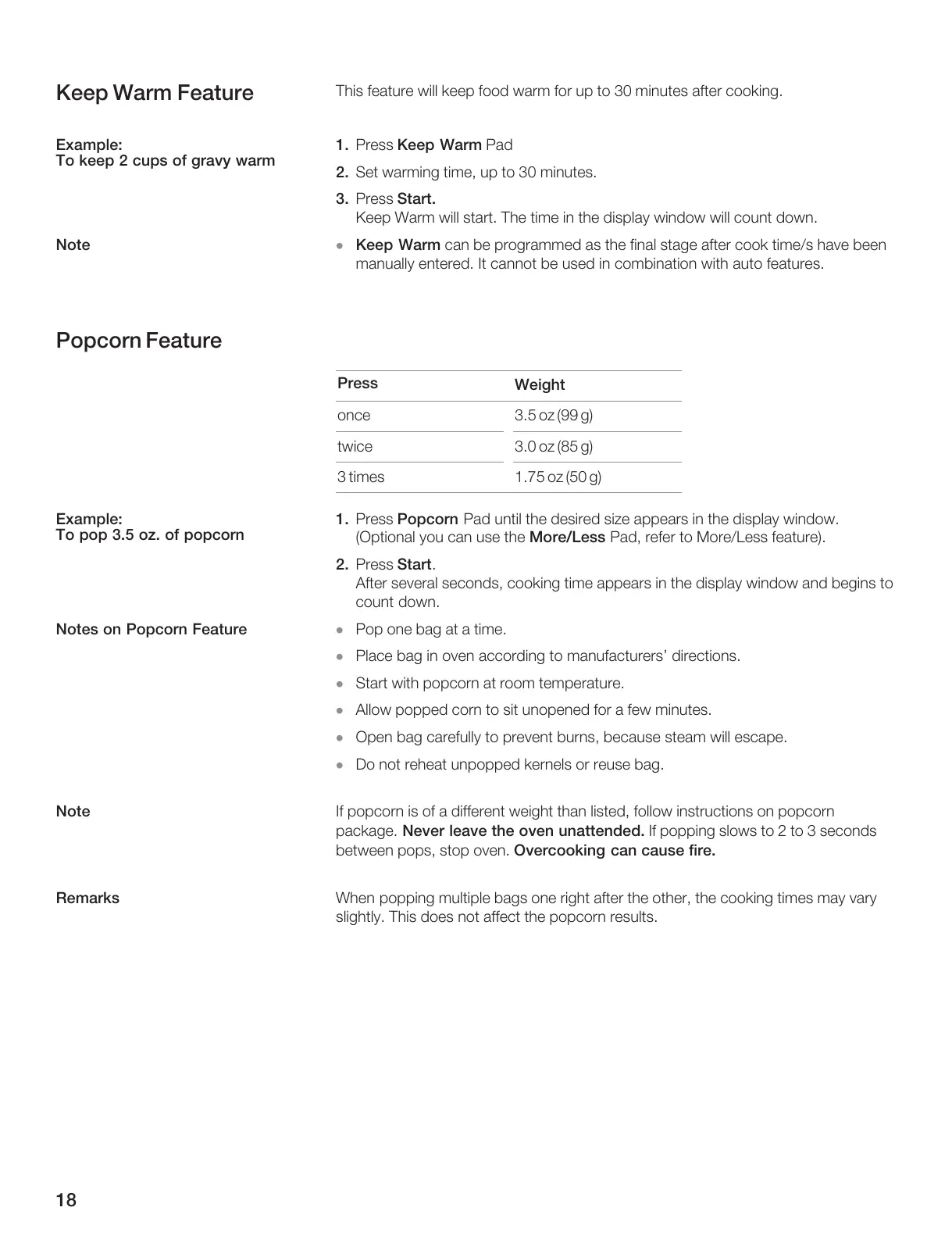 Bosch HMB8050 - Special Features: Keep Warm & Popcorn