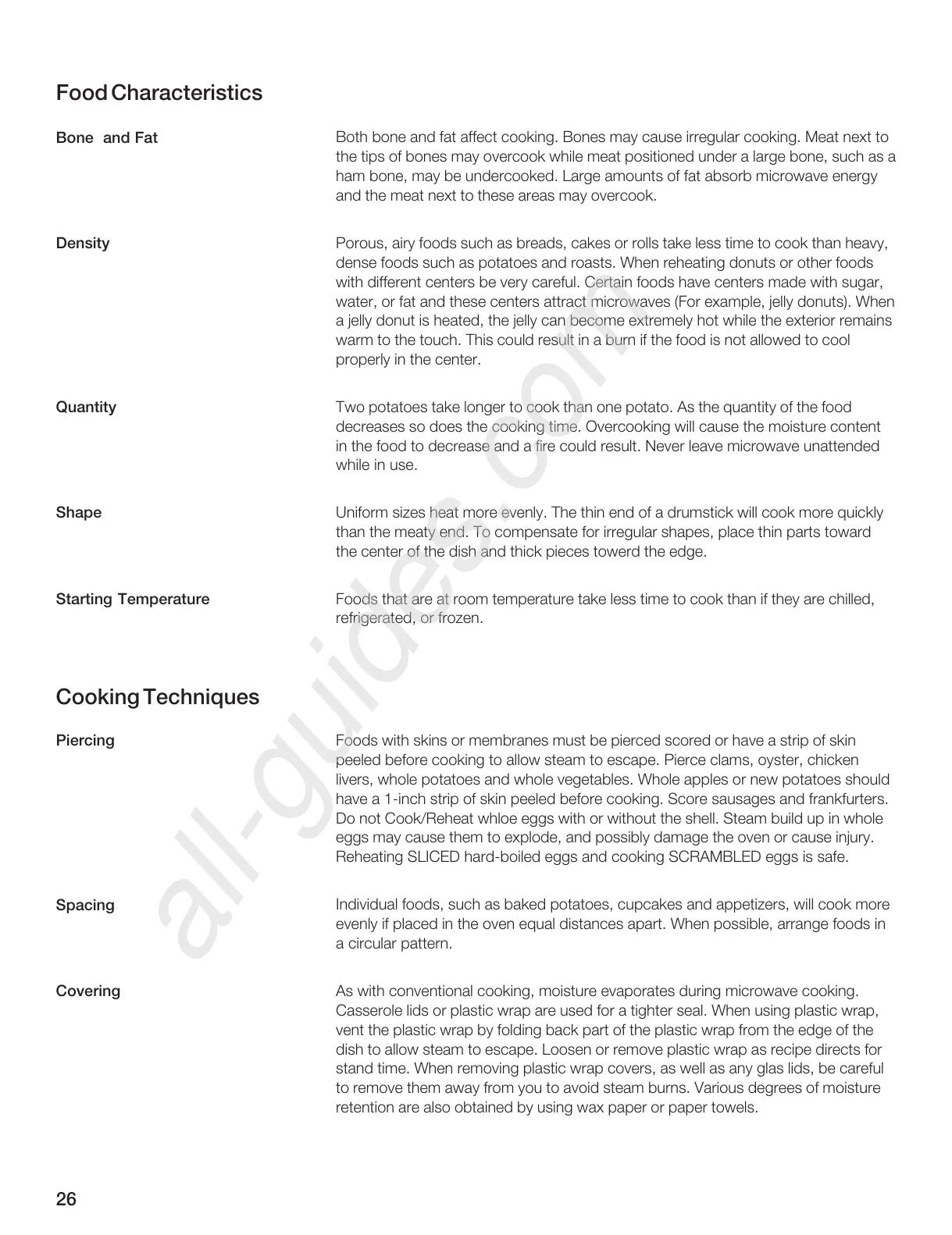 Bosch HMB8050 - Food Characteristics for Cooking; Understanding Food Properties