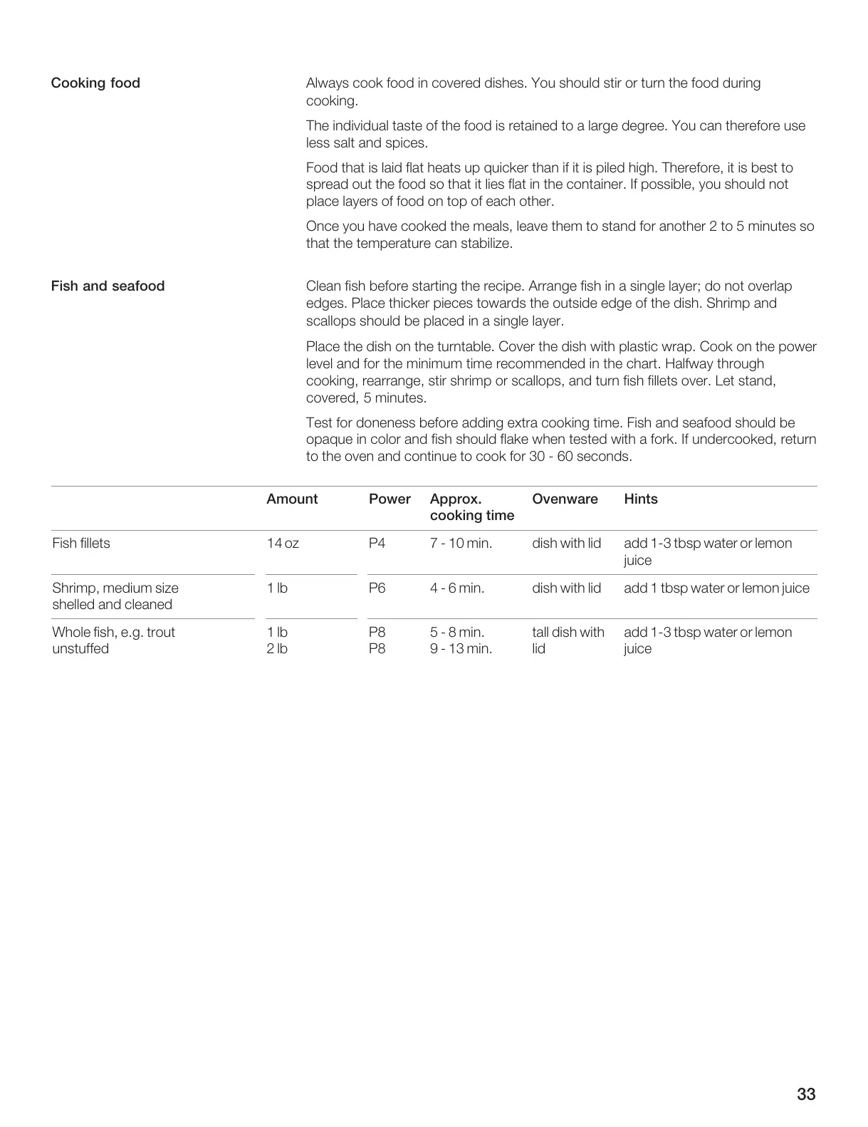 Bosch HMB8050 - Cooking Specific Foods; Cooking Fish and Seafood