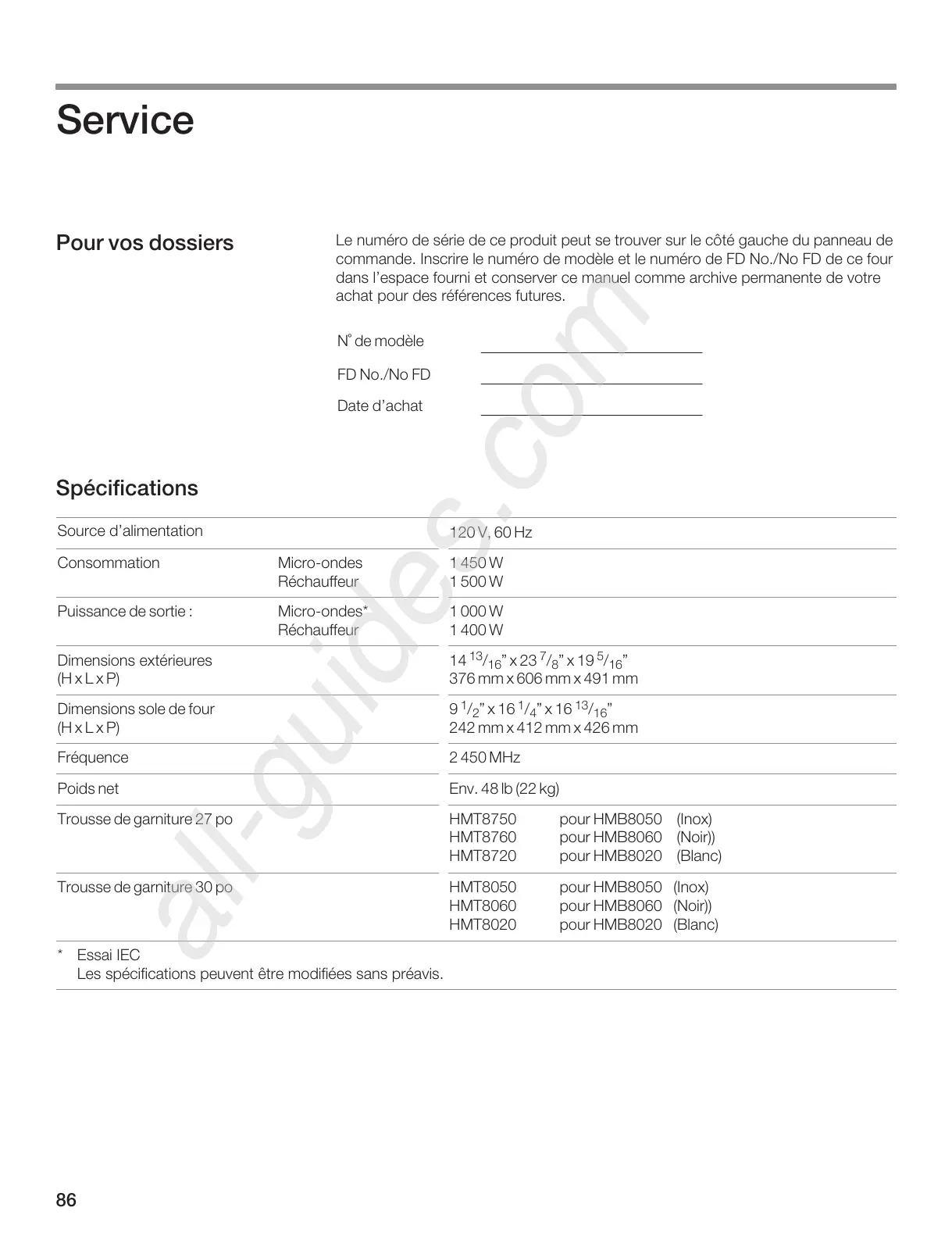 Bosch HMB8050 - Service
