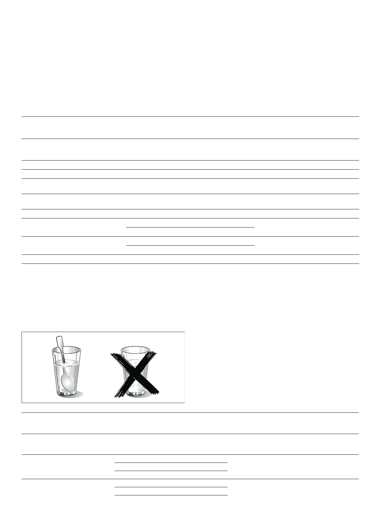Bebidas 150 ml 900 W, 1-2 min. Colocar uma colher no copo, não aquecer dema-