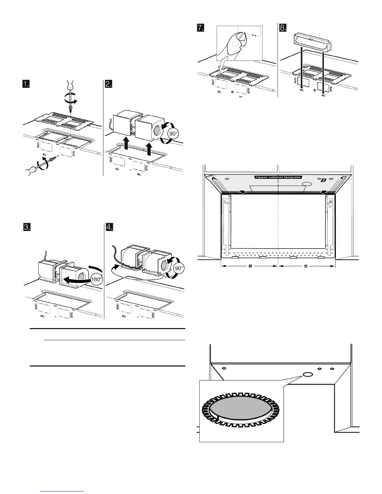 unit. Rotate blower unit 90º so that fan blade openings